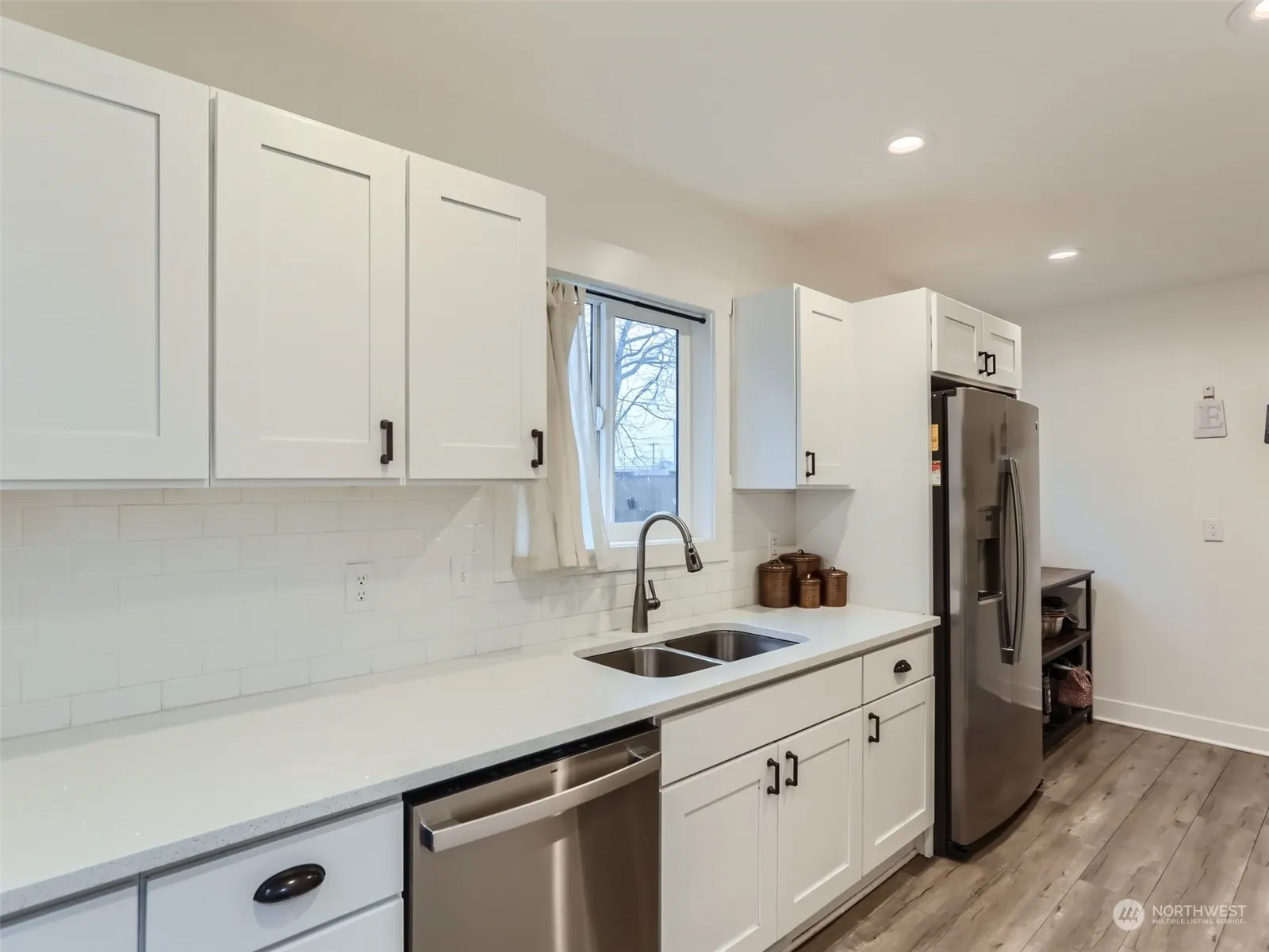 Historic charm blends with contemporary comforts. This 4 bedroom, 2 bathroom home has so much potential due to a separate side entrance to the fully finished basement, which has been recently upgraded to include a lge bedroom, bathroom & lge family room. Main floor is complete with a kitchen, two bedrooms, a full bathroom, living room & eating area. Gourmet kitchen has stainless steel appliances, quartz counters & custom cabinetry. Upper floor has additional bedroom & space that could be a potential office area. Home has a newer roof, furnace & water heater. Electrical/plumbing has been upgraded as well. A large landscaped backyard provides a private retreat for entertaining friends. Nothing to do but move into this turn-key home!