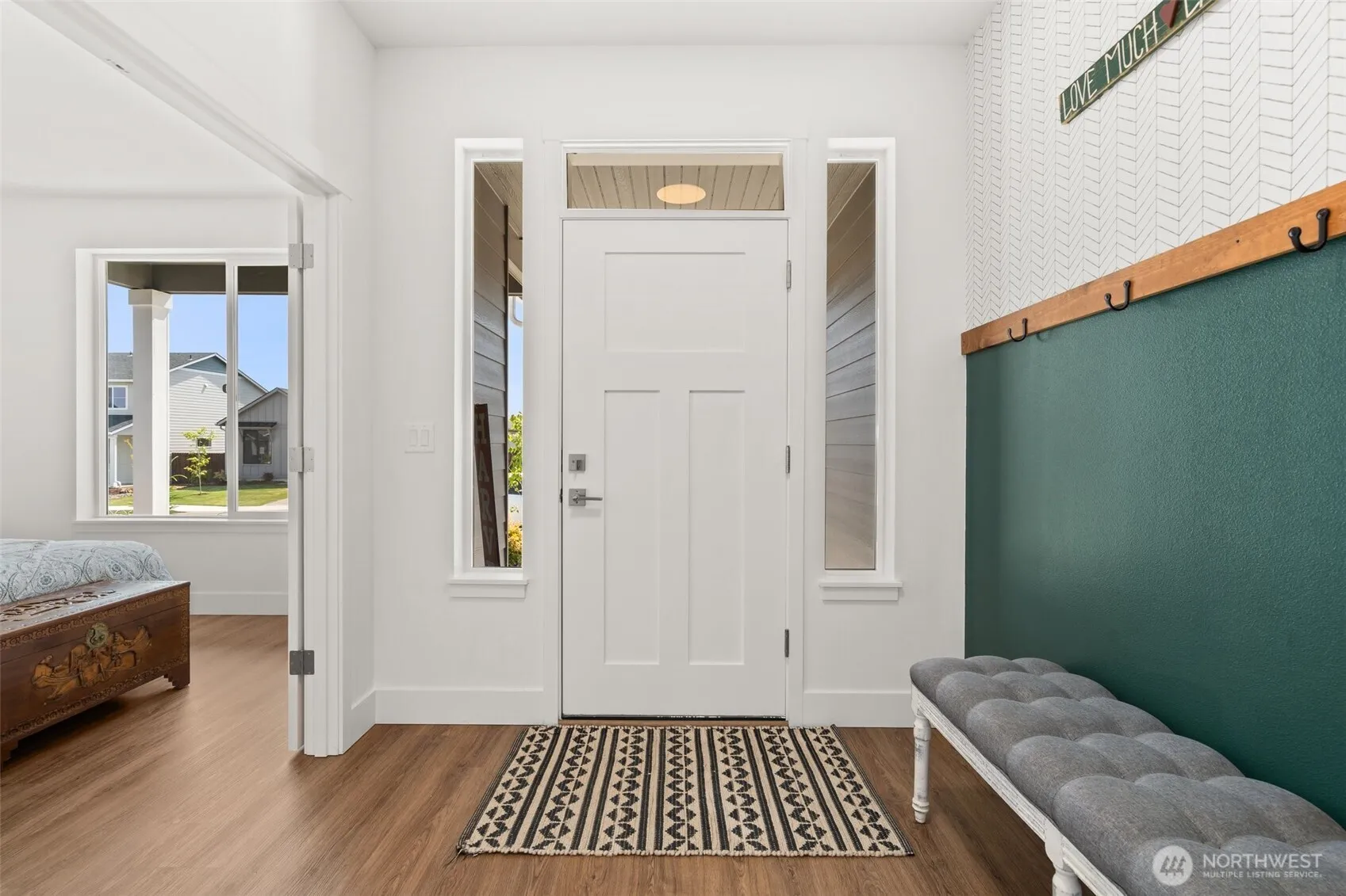 Enjoy comfortable single-level living in this beautifully designed 4-bedroom, 1.75-bath home set on a spacious lot. Step inside to find custom alder cabinets, a stunning quartz slab kitchen, and LED disk lighting throughout. The open layout includes a pantry and separate laundry room, offering ample storage and everyday convenience. The primary suite features a dual vanity, soaking tub, and a walk-in closet for a true retreat. Relax on the covered front porch or entertain on the covered back patio, with front landscaping and sprinklers already in place. This home blends style, comfort, and function seamlessly.