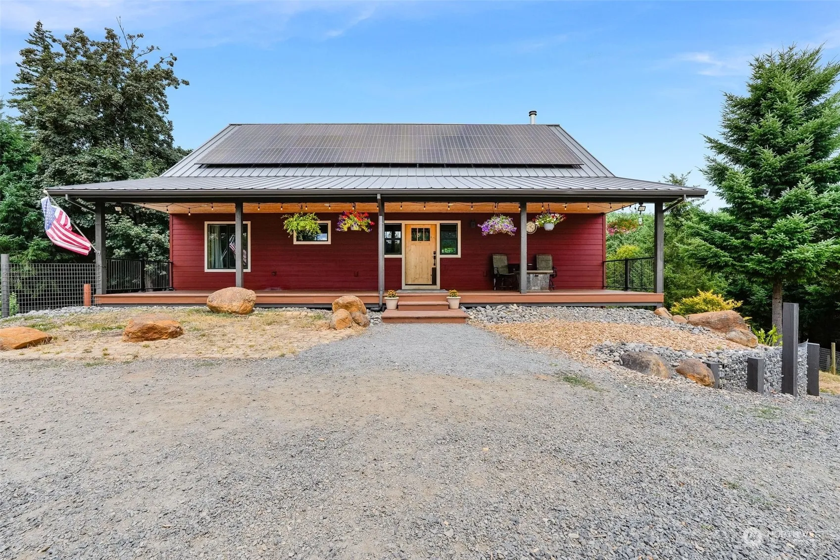Sustainable living with panoramic city and mountain views! This 3,037 sq. ft. off-grid homestead on 16.39 timbered acres in the Scappoose Mountains offers privacy and comfort with potential for add. adjacent 16.92 acres. Key features include a 42-panel, 10kW solar array, 30kW battery storage, 1,000-gal propane tank, Generac generator, central HVAC, and fire suppression. Designed for entertaining, the home has vaulted ceilings, a gourmet kitchen, 4-5 bedrooms, and multi-gen living options. Outside-Barn, Outbuildings, fenced pastures, fruit trees, a yurt with hot tub, and direct trail access.