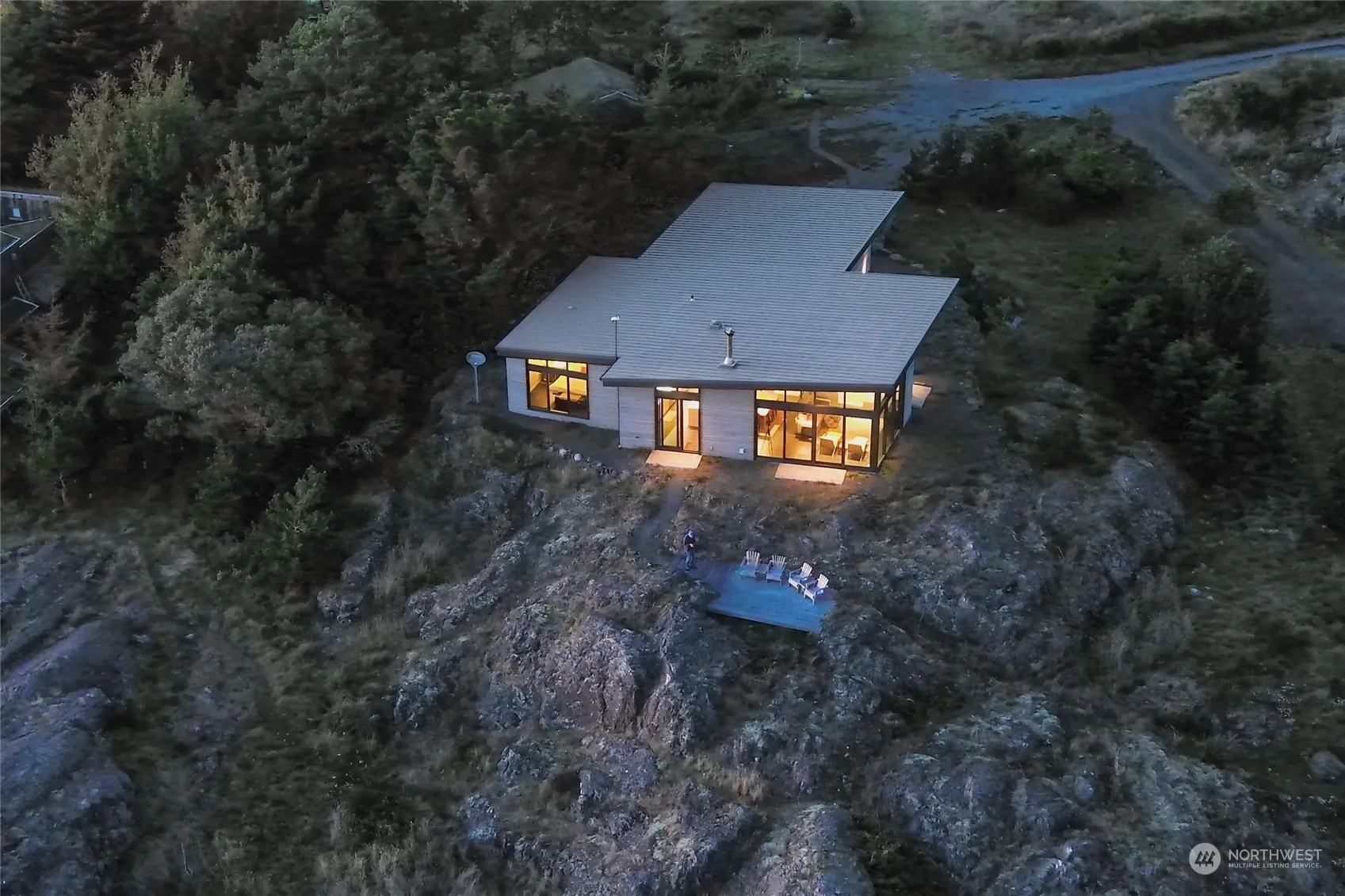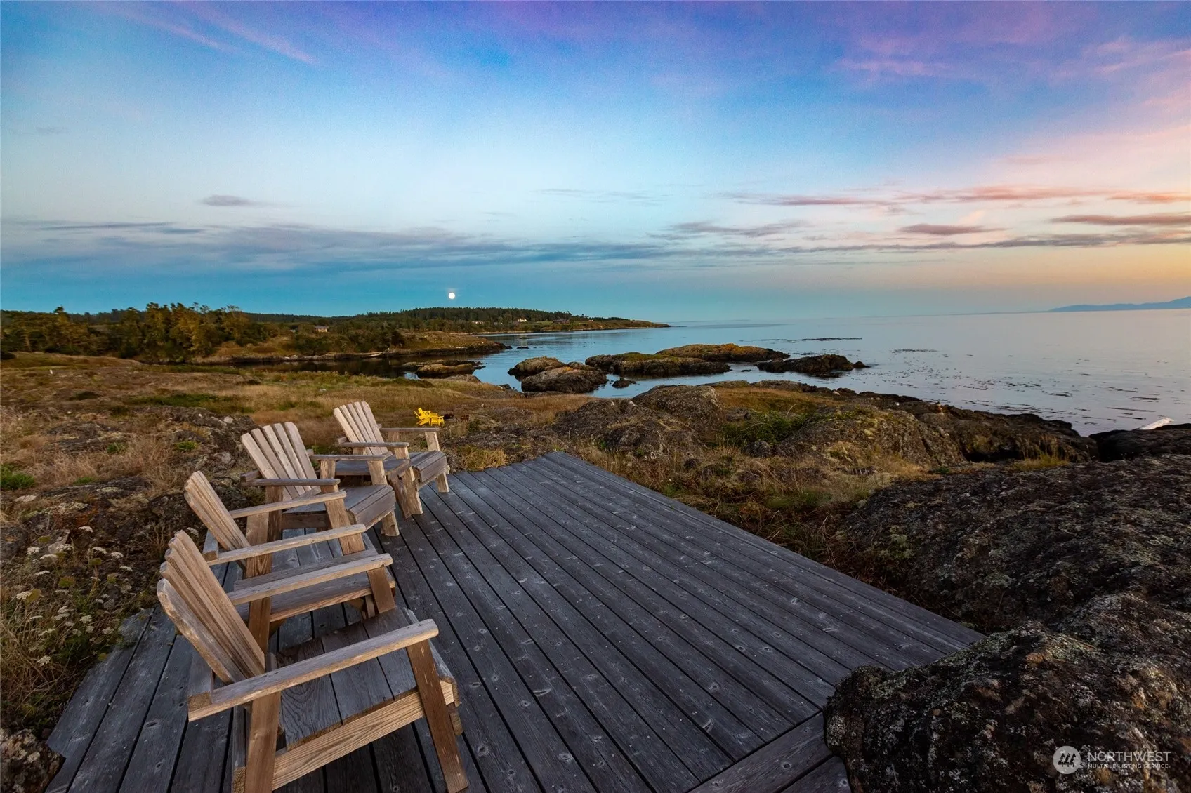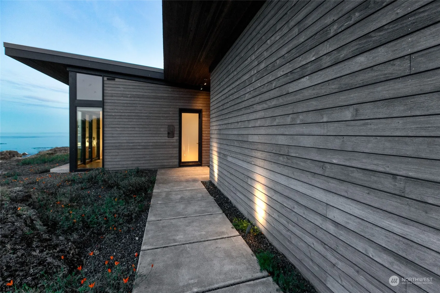 On the point … Waterfront home between Kanaka and Enterprise Bays with expansive southwest views of Haro Strait where it meets the Strait of Juan de Fuca, the Olympic Mountains and Mt. Rainer. Experience eagles soaring and whales passing by while you relax on the wood deck platform nestled on the picturesque shoreline. Single story contemporary home built in 2016 is move in ready with an open design offering floor to ceiling windows, den, 2 bedrooms, 2 bathrooms, large utility room and 2 car garage with EV Charger. Chef’s kitchen with large island including eating bar and quality SS appliances. Primary bedroom offers spectacular water view, en-suite bath and double closets. Easy access to Town of Friday Harbor with all the amenities.
