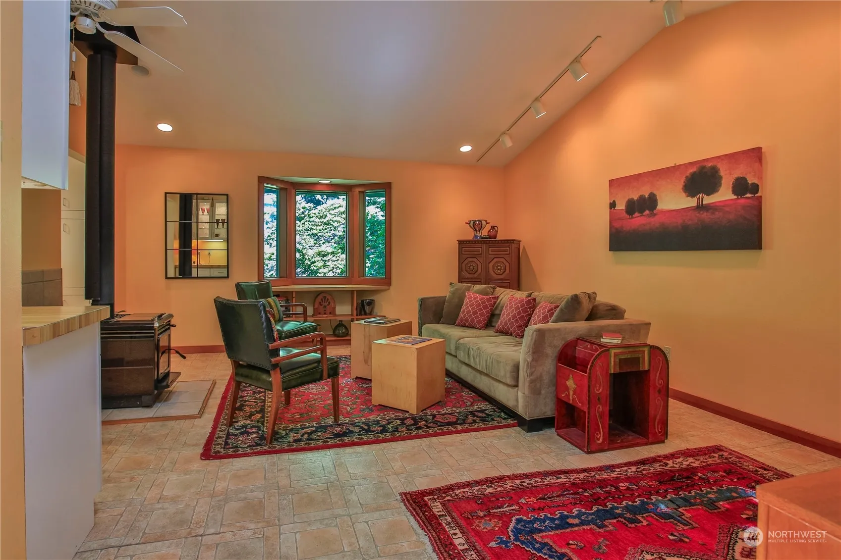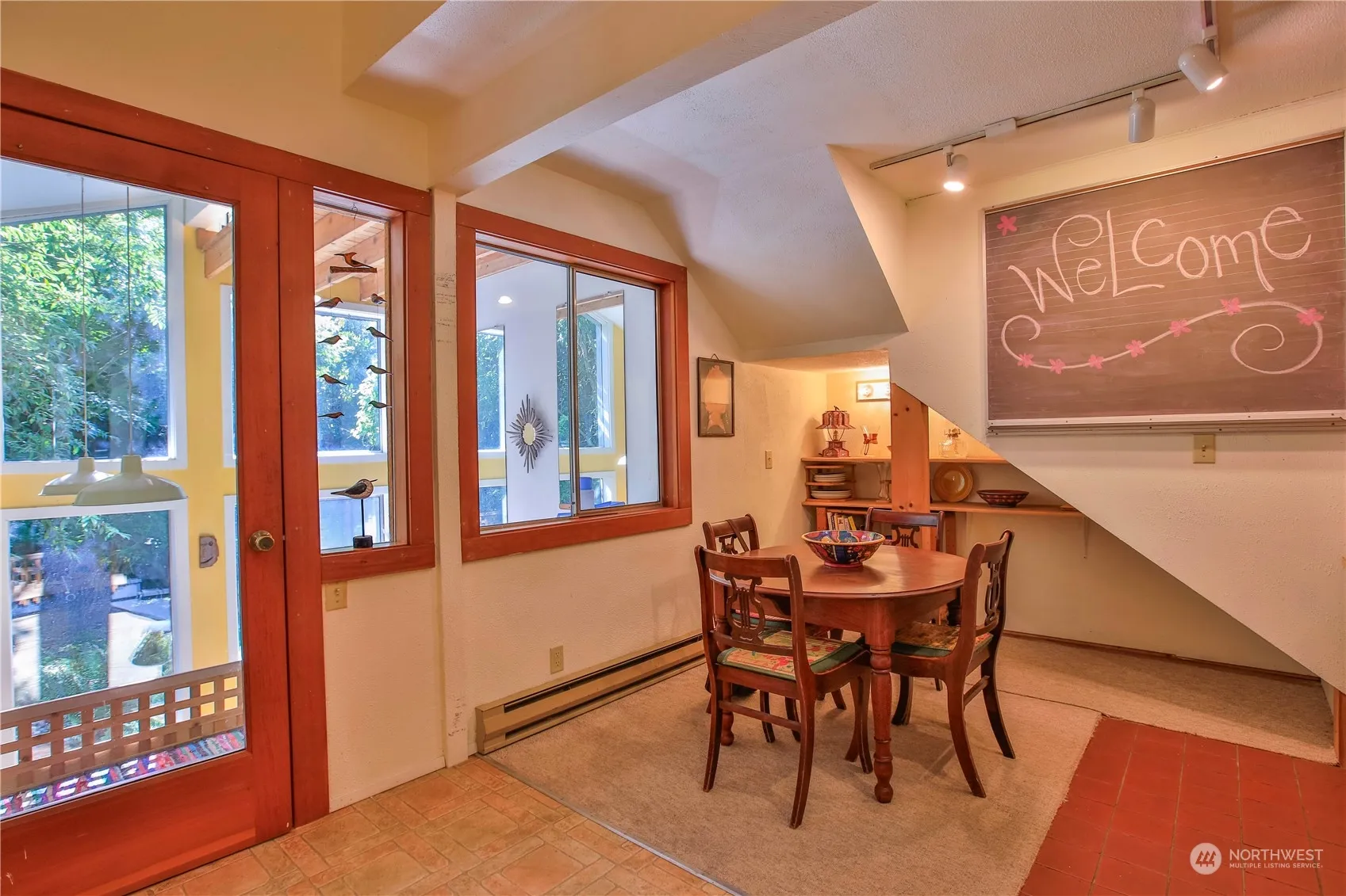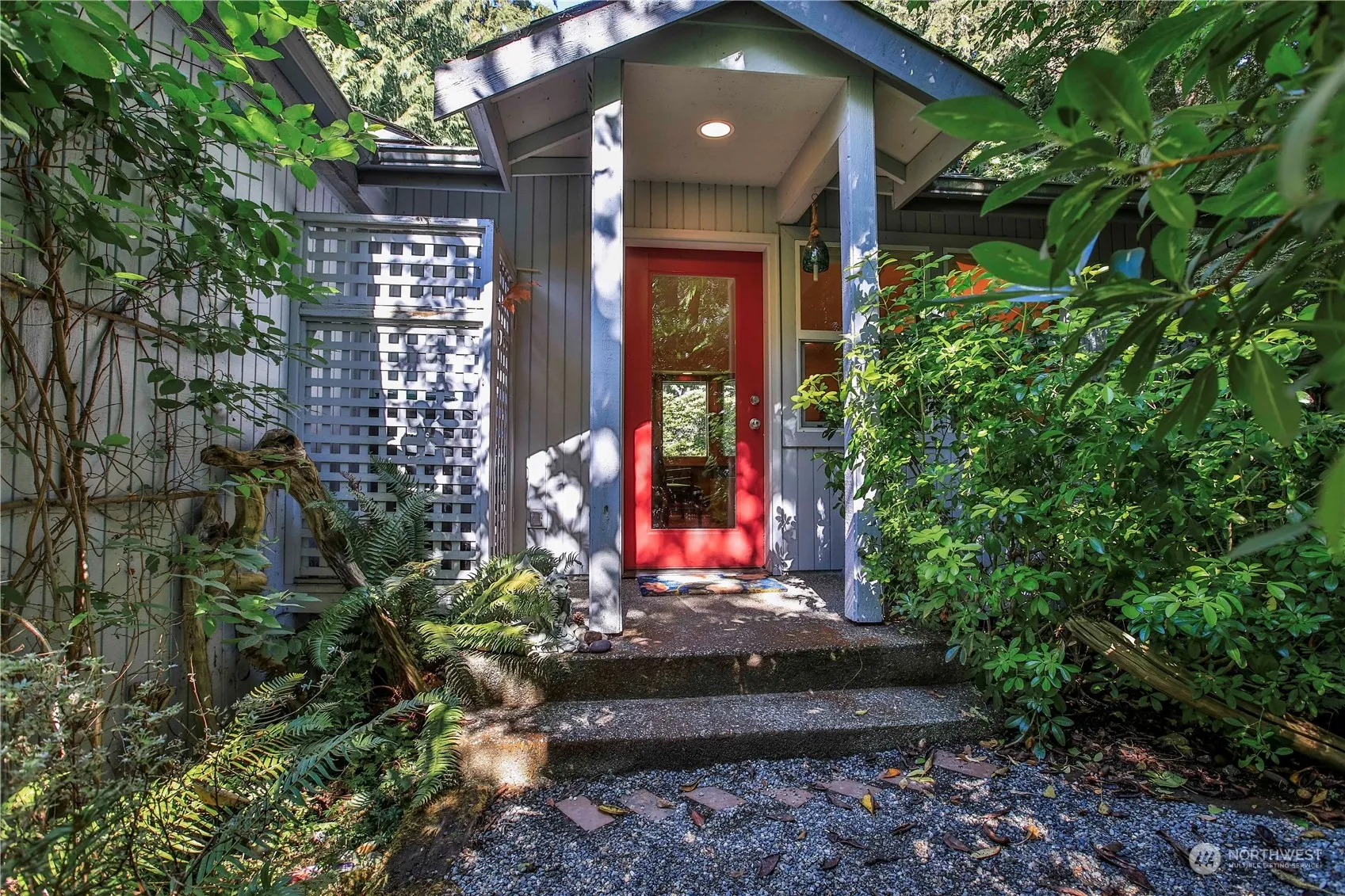 Discover this unique Whidbey Island home, just 2 miles from downtown Langley. The 1,815 sq.ft. home features 2 bedrooms, a bonus loft, and 2.5 bathrooms. Enjoy a cozy living room with a wood stove, a kitchen with newer stainless steel appliances and wood slab counters, and a versatile great room leading to an outdoor oasis. Additional highlights include energy-efficient windows, a sunroom with stunning views and a primary suite with separate entrance and laundry room offering potential for use as a separate dwelling. The property includes a detached 2-car garage, nestled on 5± old growth wooded acres, it offers a private, serene setting with a master gardener’s year-round blooms.
