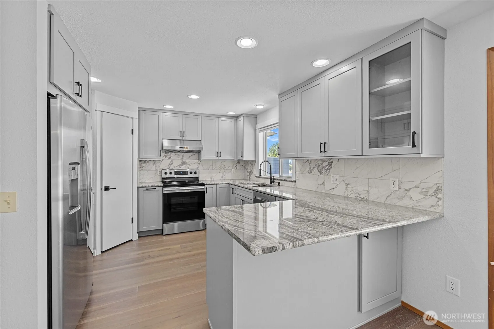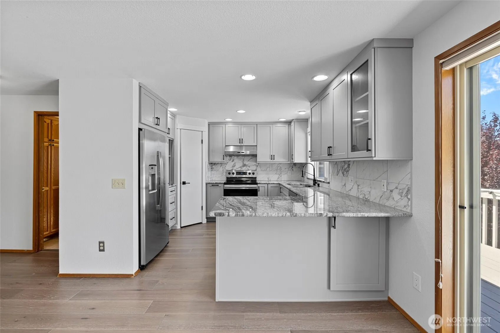 Discover stunning views of Guemes Channel, just steps from serene Cranberry Lake Trails and expansive Anacortes Community Forest Lands! This beautifully updated, well-maintained daylight basement home features open-concept main floor with fresh flooring, cozy stone gas fireplace, and stylish kitchen with modern cabinets and elegant granite countertops. Upper level: two generous bedrooms, primary suite with walk-in closet and spa-like bath with tiled walk-in shower, plus full hall bath. Lower level: two large bedrooms, flexible bonus room, full bathroom, direct access to vast backyard with sport court. Ample RV parking and garage storage. Seamlessly combines modern enhancements with natural beauty, perfect for the ultimate coastal lifestyle!
