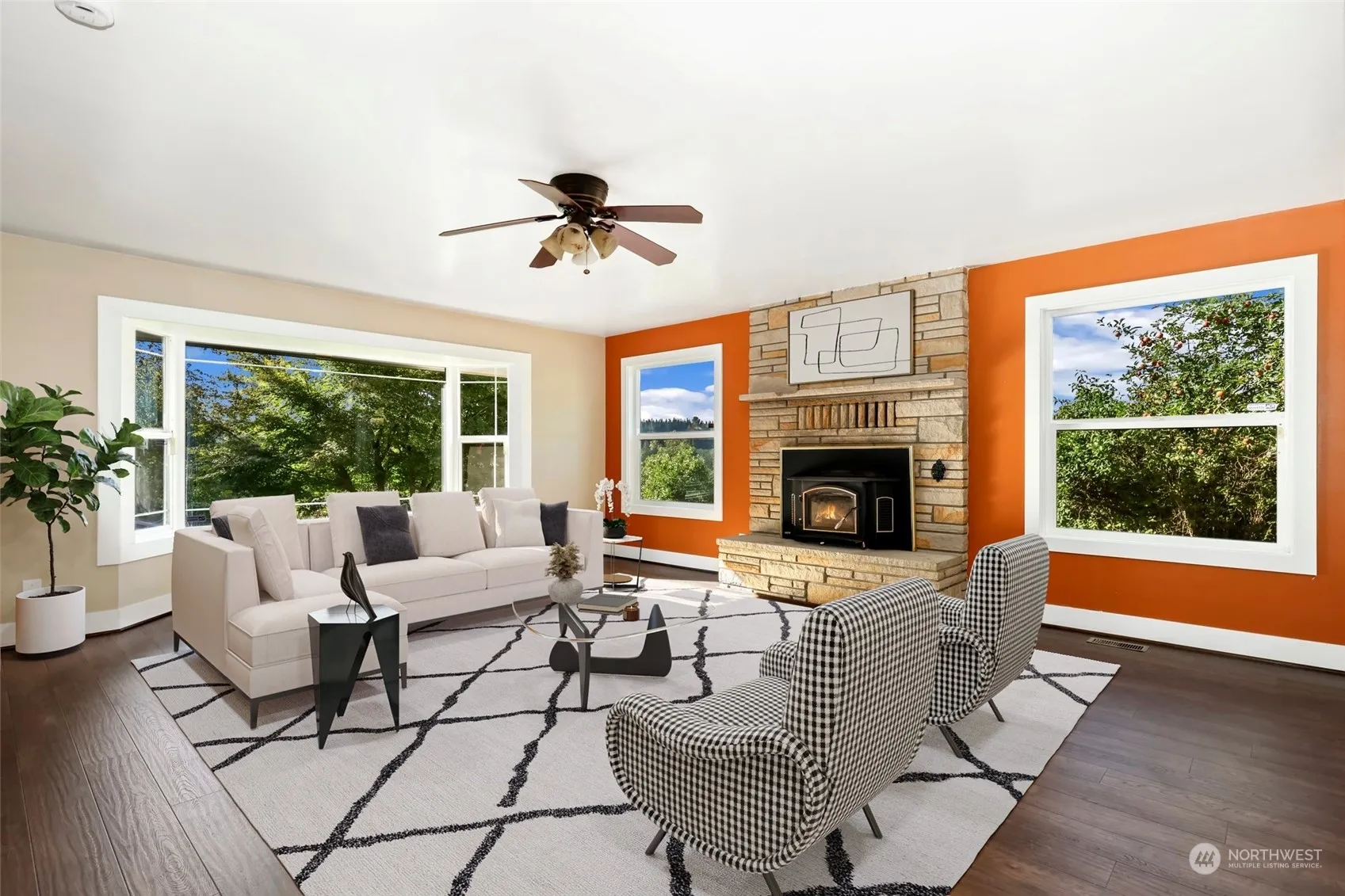 Completely updated home on a private half acre! Large kitchen with tons of cabinets, stainless steel appliances and quartz countertops. This home has new flooring throughout and boasts two suites, one on the main floor and a second suite upstairs with an additional flex room. Relax in the spacious living room with a wood stove insert. Attached garage and one detached covered parking space. Enjoy partial lake and mountain views from the covered porch or back deck gazebo!