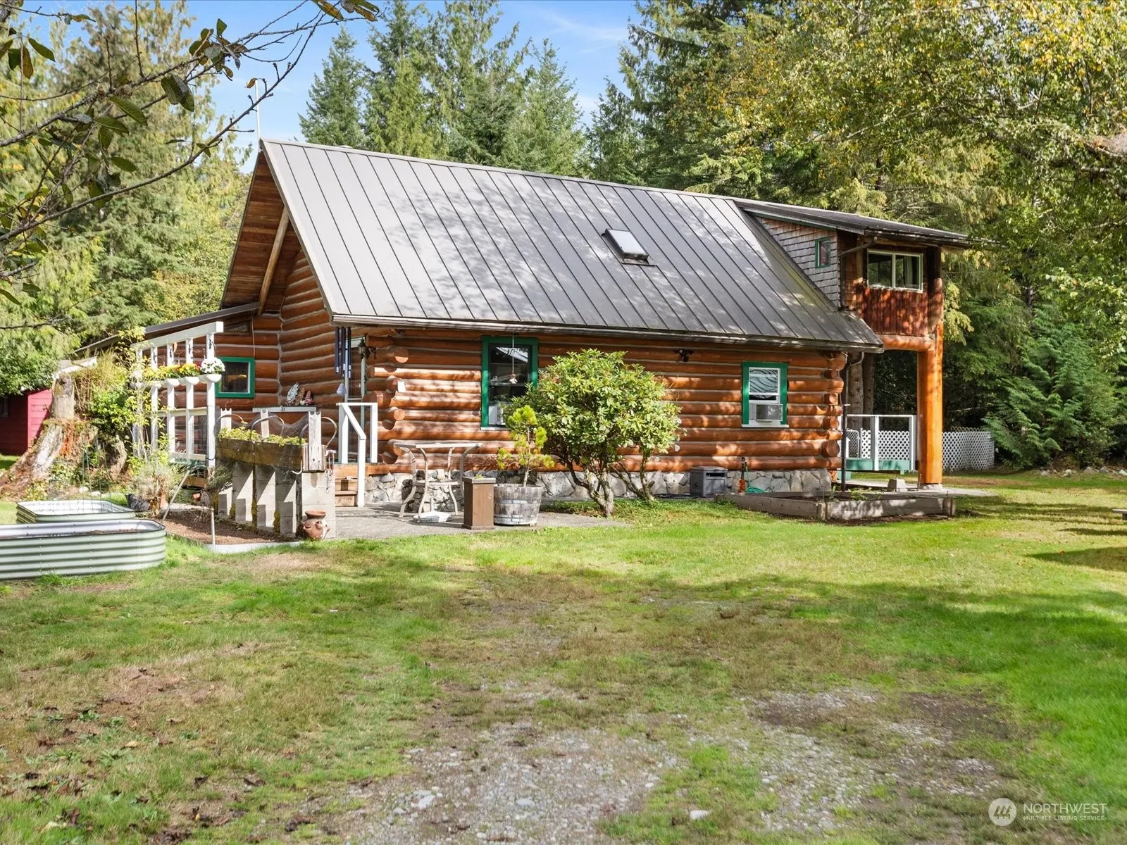 Rare opportunity awaits on this 5-acre oasis in Gold Bar! Stunning, rustic, lodge-style home w/soaring ceilings, gorgeous log accents, stained glass windows and skylights to let in natural light & all the views nature has to offer. Main floor offers spacious open-concept floor plan w/updated gourmet kitchen, attached pantry, and open family room. The property also has an additional dwelling unit w/potential for rental income. Endless opportunity with detached office/flex space, detached guest quarters, gazebo, and pole building with ample parking and space for ALL your recreational hobbies. The perfect blend of modern amenities & serene natural surroundings make it an ideal location for potential equestrian, or gatherings intimate or grand!