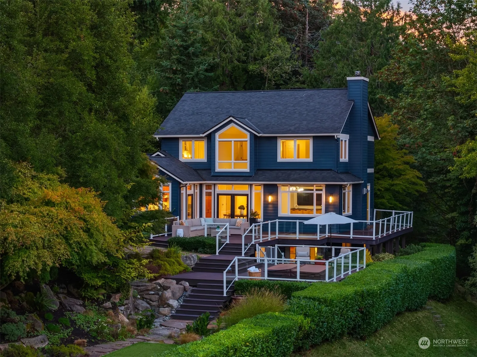 This sophisticated home is tucked away for privacy and all-day sunshine! Mature gardens, large entertaining decks and a hot tub for enjoying island living. Located on the south end of the island which has become the place to be! Restaurants, entertainment, shops, recreation and so much more. Refreshed with newer kitchen, new roof, new wool carpets and new main-floor bath. Sunny, open interiors flow from room to room and French doors lead to decks for seamless indoor/outdoor living. Two primaries: one on the main and another on the upper level with beautiful views. Third bedroom and bath + media room/home office for those working from home. The lower level is ideal for guests or personal gym. All the spaces you need are here!