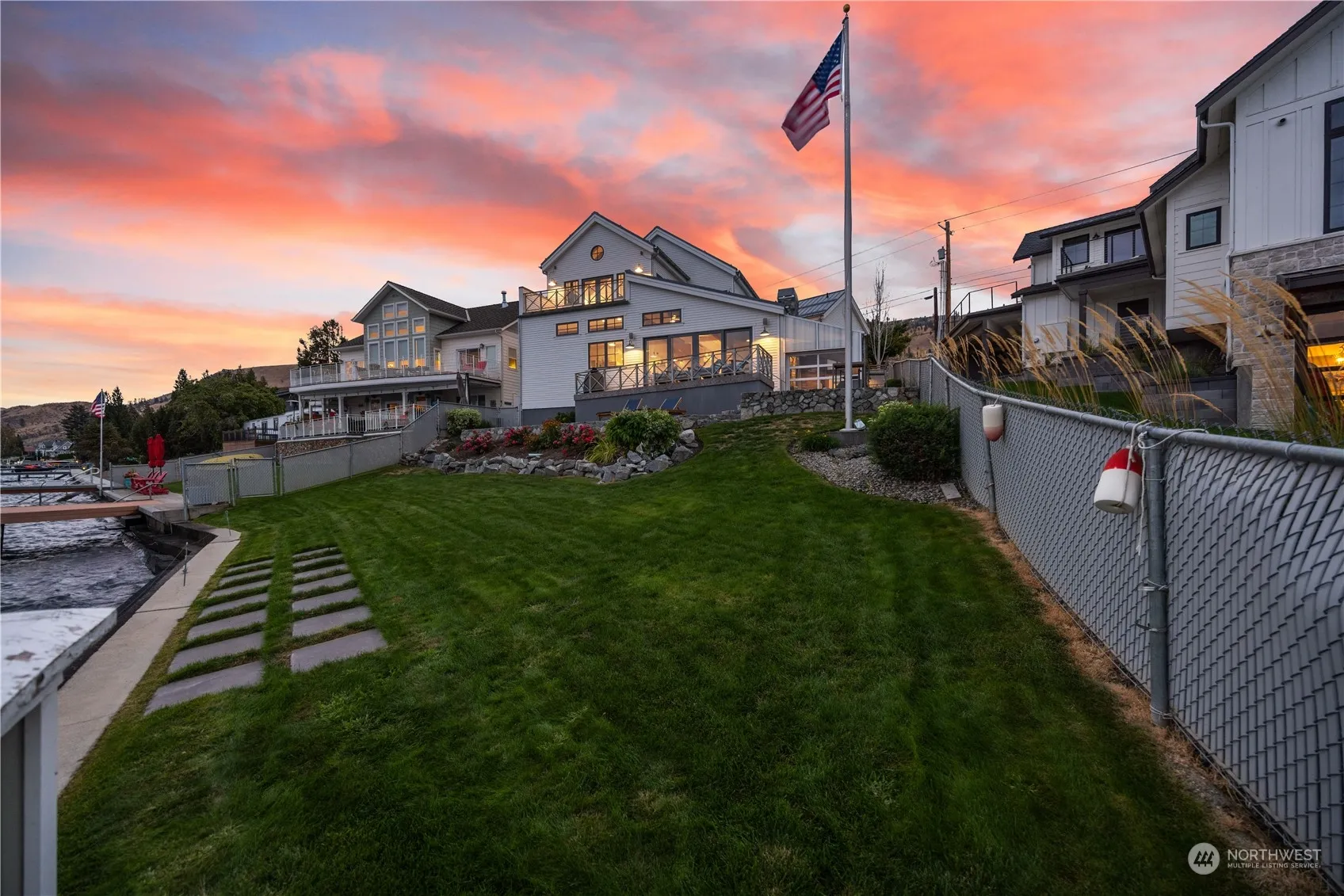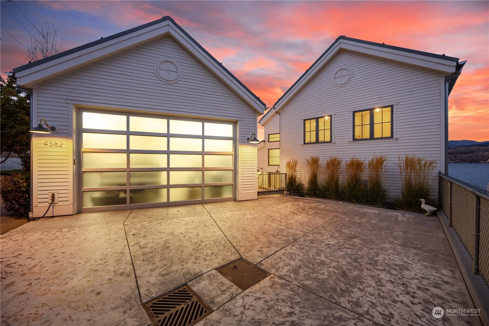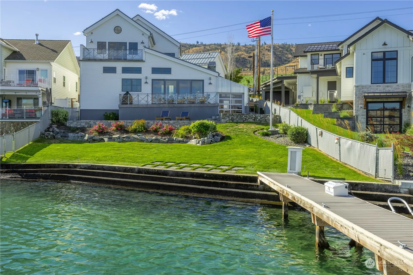 Considered one of the purest architectural designs on the sunny S. Shore of Lake Chelan, this MODERN COASTAL house offers 69ft of low-bank waterfront w/ a diverse landscape & patios for entertaining. Built in 2012, this 2-story 3bed/2.5bath, 2,614SF home + 209SF 1bed/1bath casita embodies breezy beach-inspired aesthetics & seamless layers of rustic wood & zinc elements. Interior invites you w/ soaring 20+ft ceilings, wide plank wood floors, statement lighting, Pella doors/windows, an airy & light-filled great room & a gorgeous chef’s kitchen w/ high-end appliances, cabinets, a blend of granite,quartz,limestone counters & open concept pantry. Elegant Primary en-suite embraces a European-inspired wet room w/ floor-to-ceiling tile & balcony.