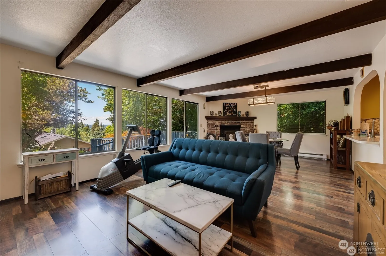 Sound view duplex next to a serene greenbelt. Each unit features a fireplace, an in-unit washer & dryer, a private deck and a large garage. Unit 1921 offers a single-lever layout with 2 bedrooms, 1 bath plus a versatile bonus room (3rd bedroom/office). Enjoy beautiful water views from the living room, deck, and private yard. Recent updated include hardwood laminate, marble, and tile flooring. Unit 1925 has 2 bedrooms and 1 bath. 2,008 SF livable + 832 SF garage=2,840 SF total. Minutes from beaches, parks, marina, shopping, dinning, top-rated schools, gold course & trails. Ideal for multi-generational living, owners-users, and investors. Live in one unit and let the other pay your mortgage. Qualifies for residential financing.