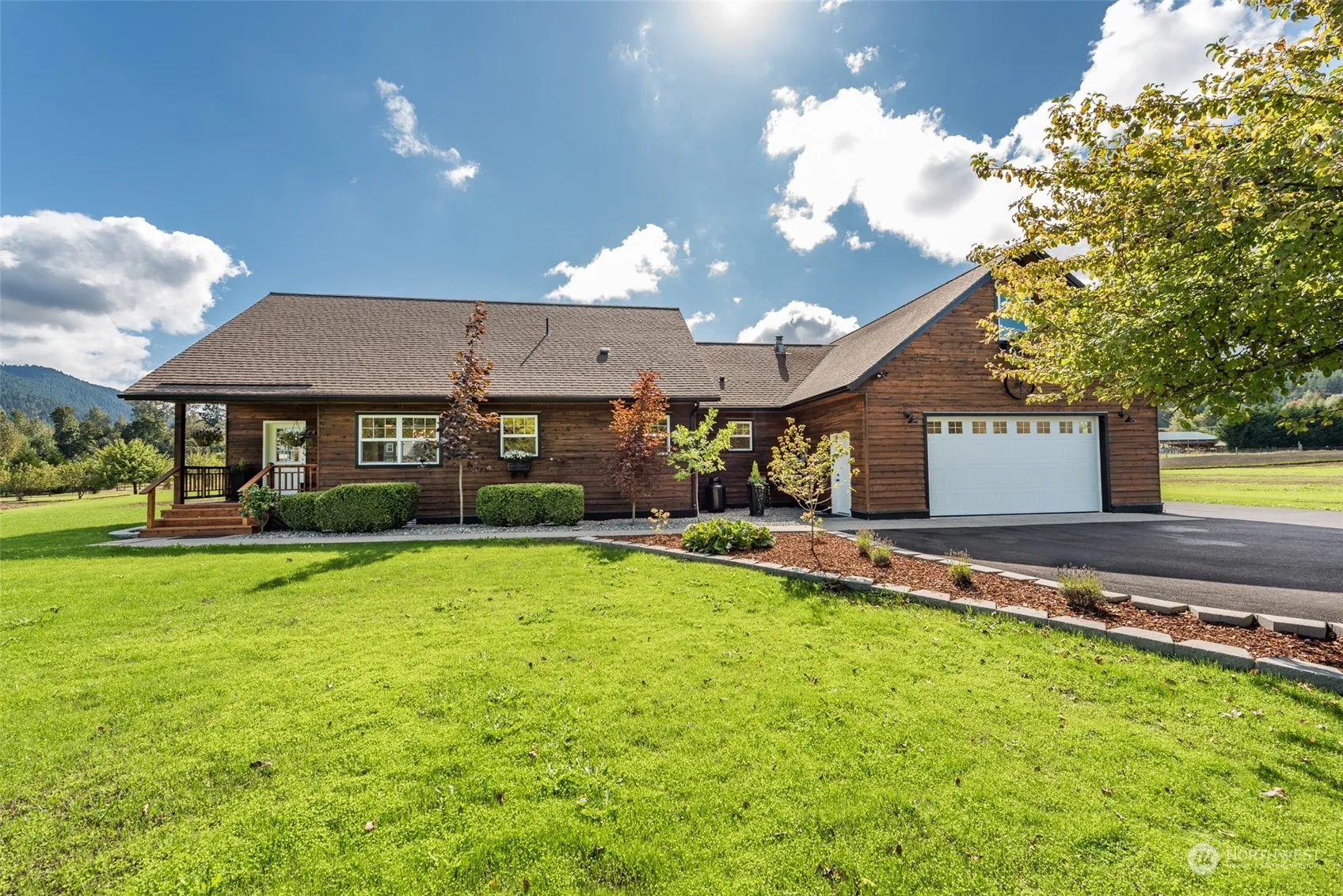Beautiful cedar home on 6.21 acres of fully fenced and irrigated land ideal for horses and/or farming. Located less than 10 minutes from downtown Sequim, this gorgeous property is set near the end of a newly paved dead end road of estate homes. Accessed through an electric gate, the sense of privacy and space allows anyone who enters the opportunity to slow down, relax and take in the natural beauty visible in every direction. Large living room area off the kitchen with access to a covered back porch and a lovely porch swing. Separate den/office downstairs plus bedrooms suites both on main level and upstairs.