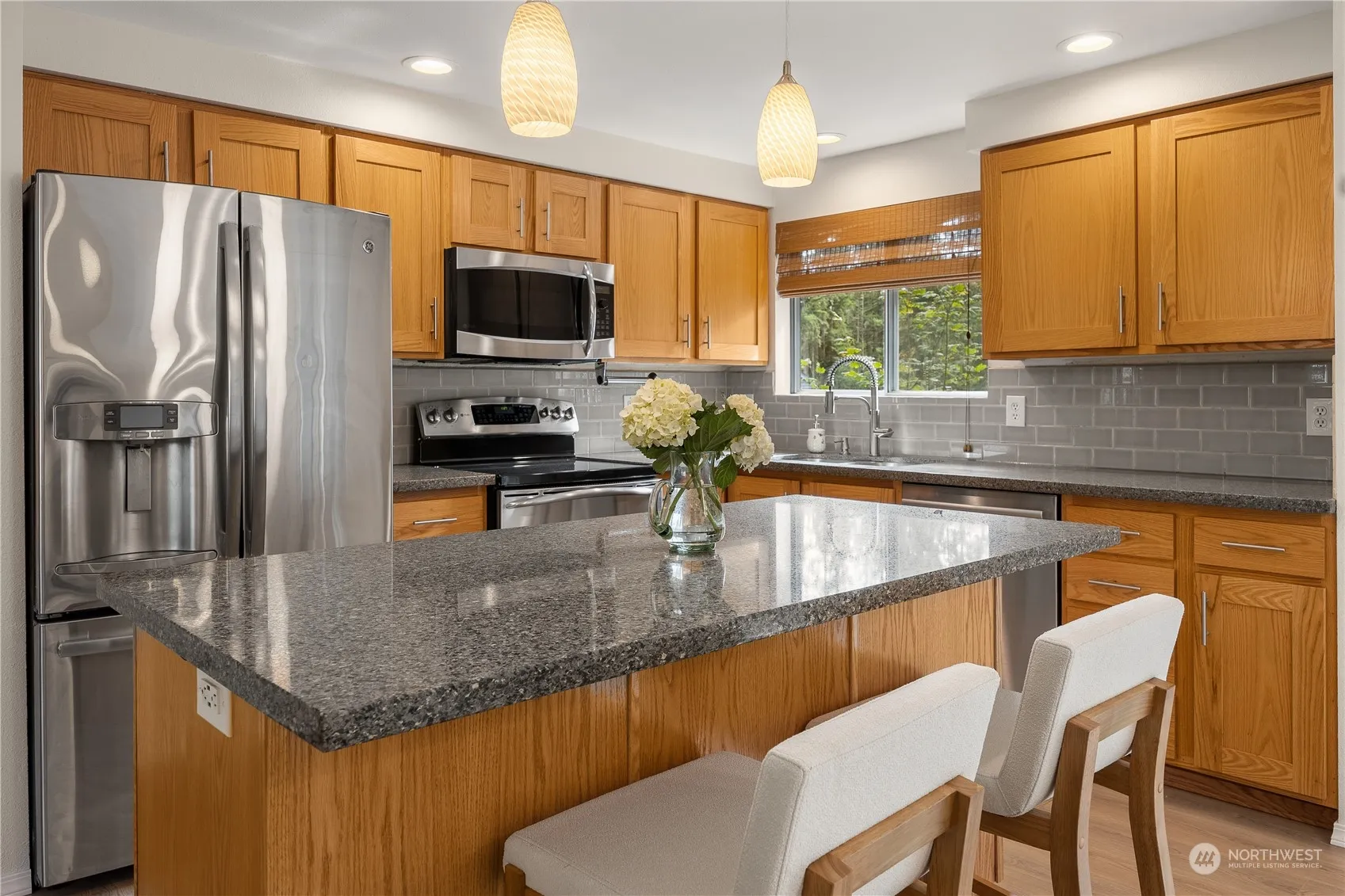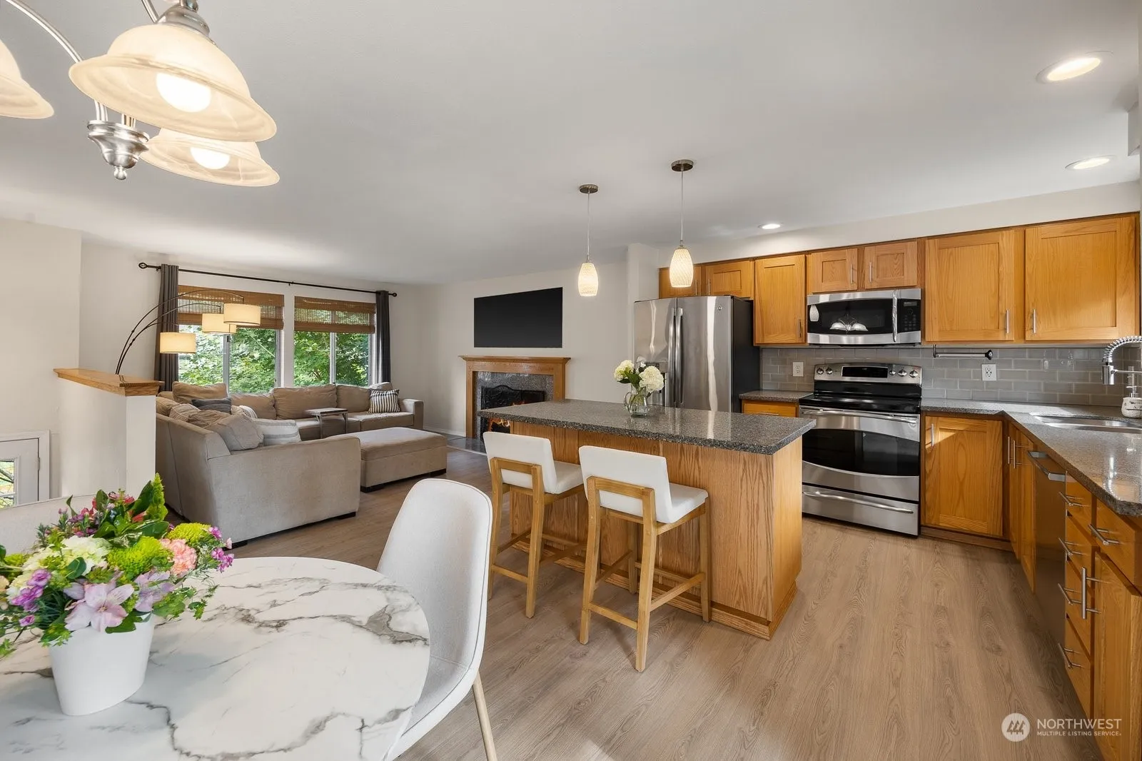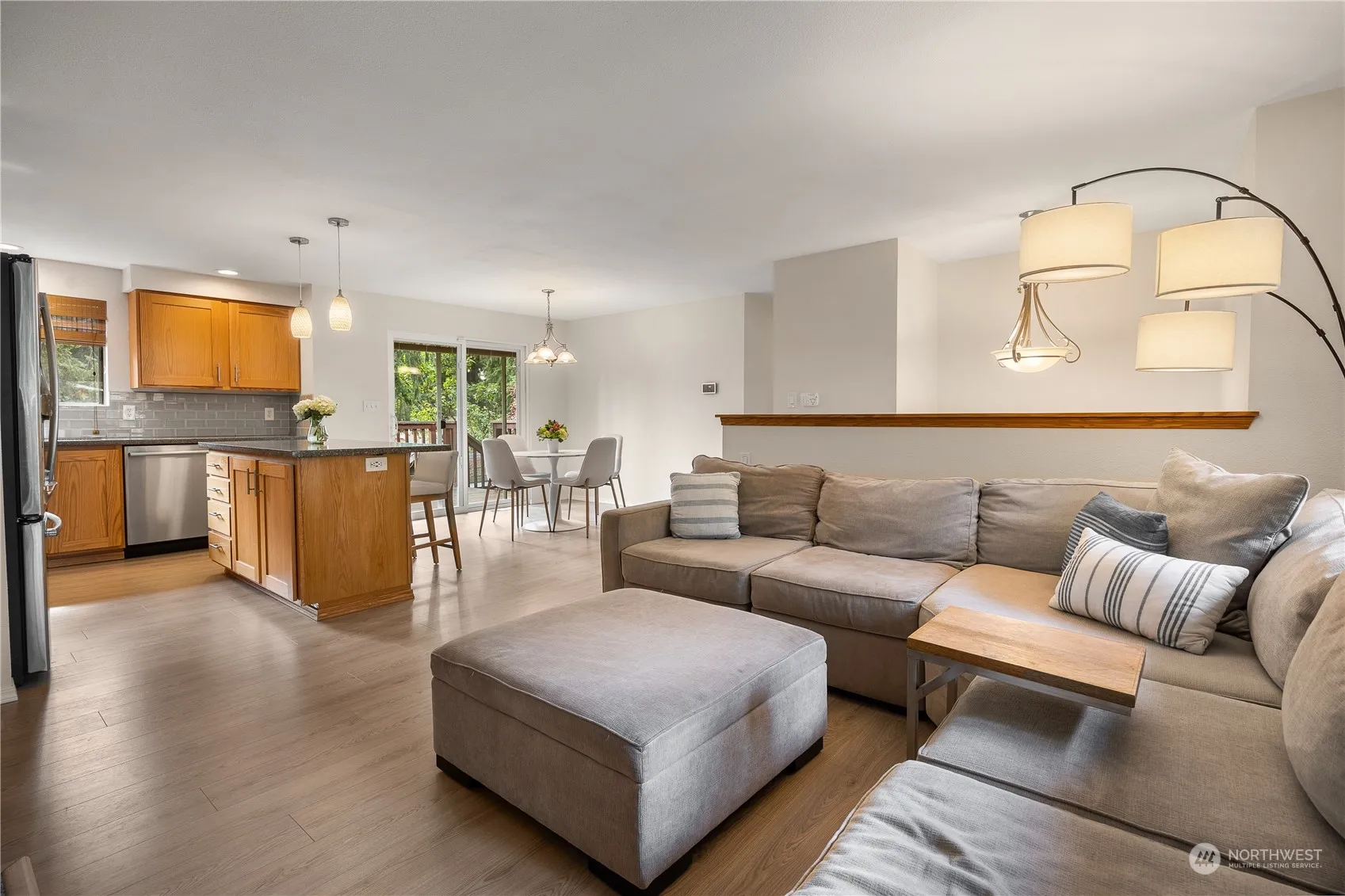 Welcome to this move-in ready, beautifully updated 3-bedroom, 2-bath home, featuring an open-concept layout and spacious rec room. Recent upgrades include fresh interior and exterior paint, new flooring, a modernized primary full bath, new gutters, new retaining wall, new fencing, furnace/heat pump (2022) for year round heating & cooling. All appliances are included. Situated on a desirable corner lot with lots of parking. The property boasts a large backyard with multiple iron wood decks, complete with an under-deck rain gutter system to keep your patio dry all year. Located in a community offering amenities such as a pool, basketball court, and playground. Conveniently close to schools, shopping, dining and more—this home is a must-see!