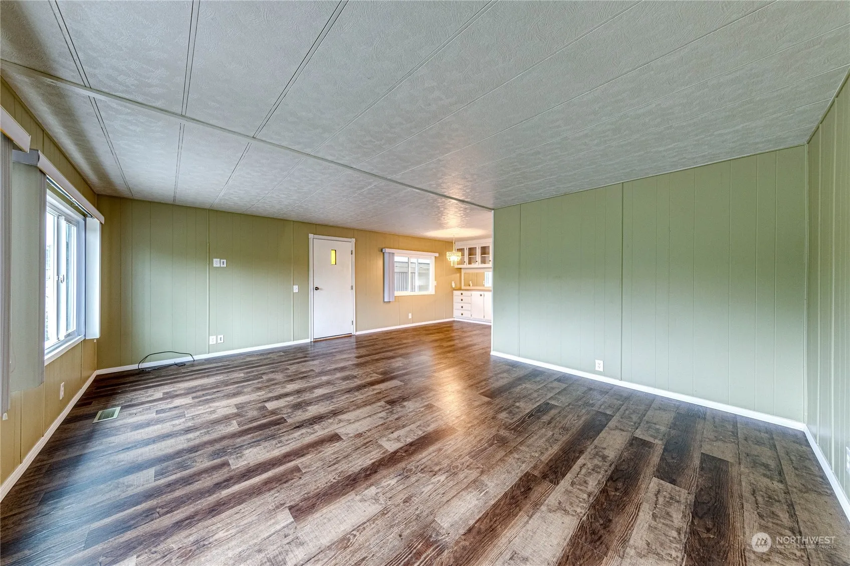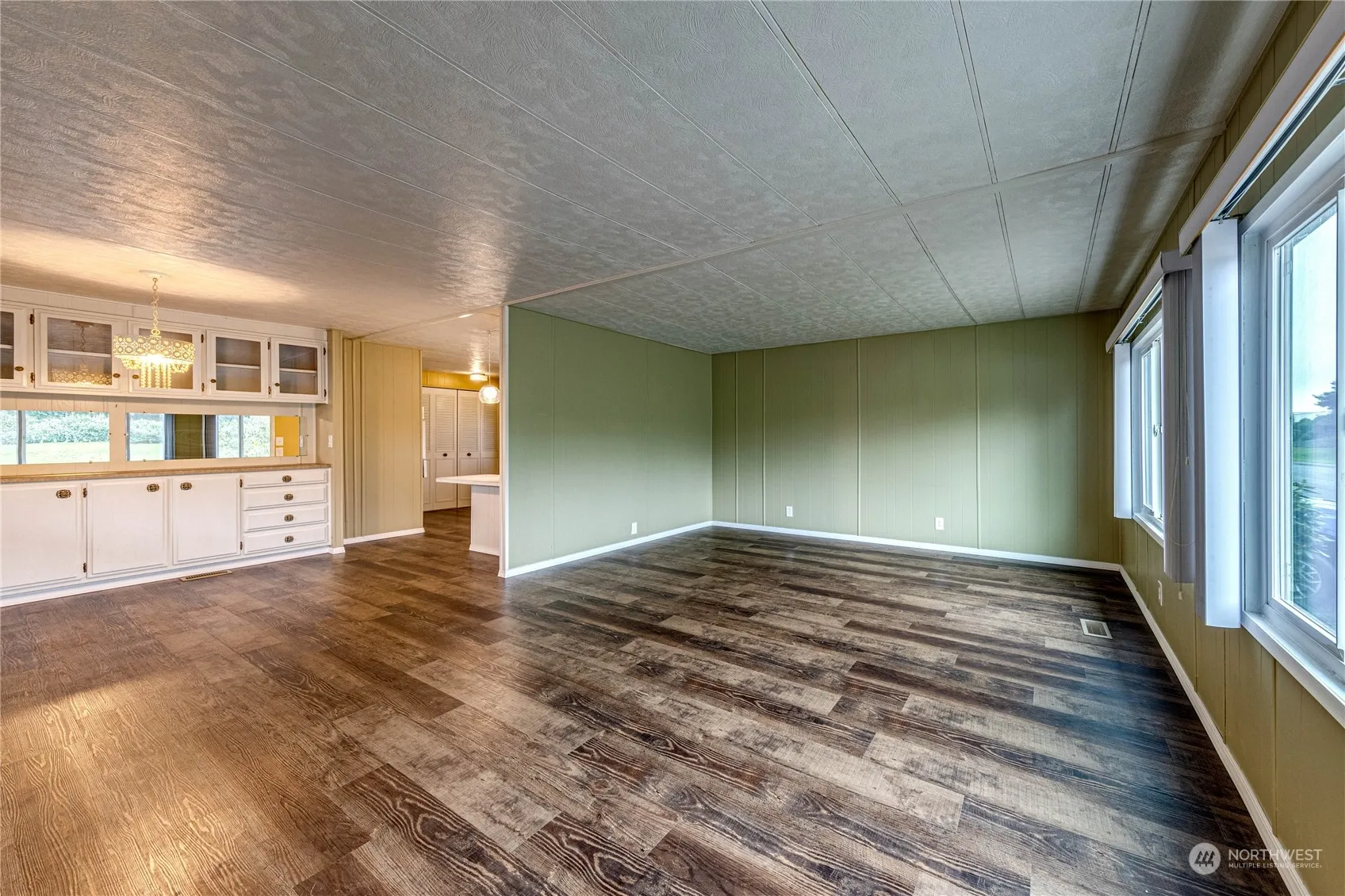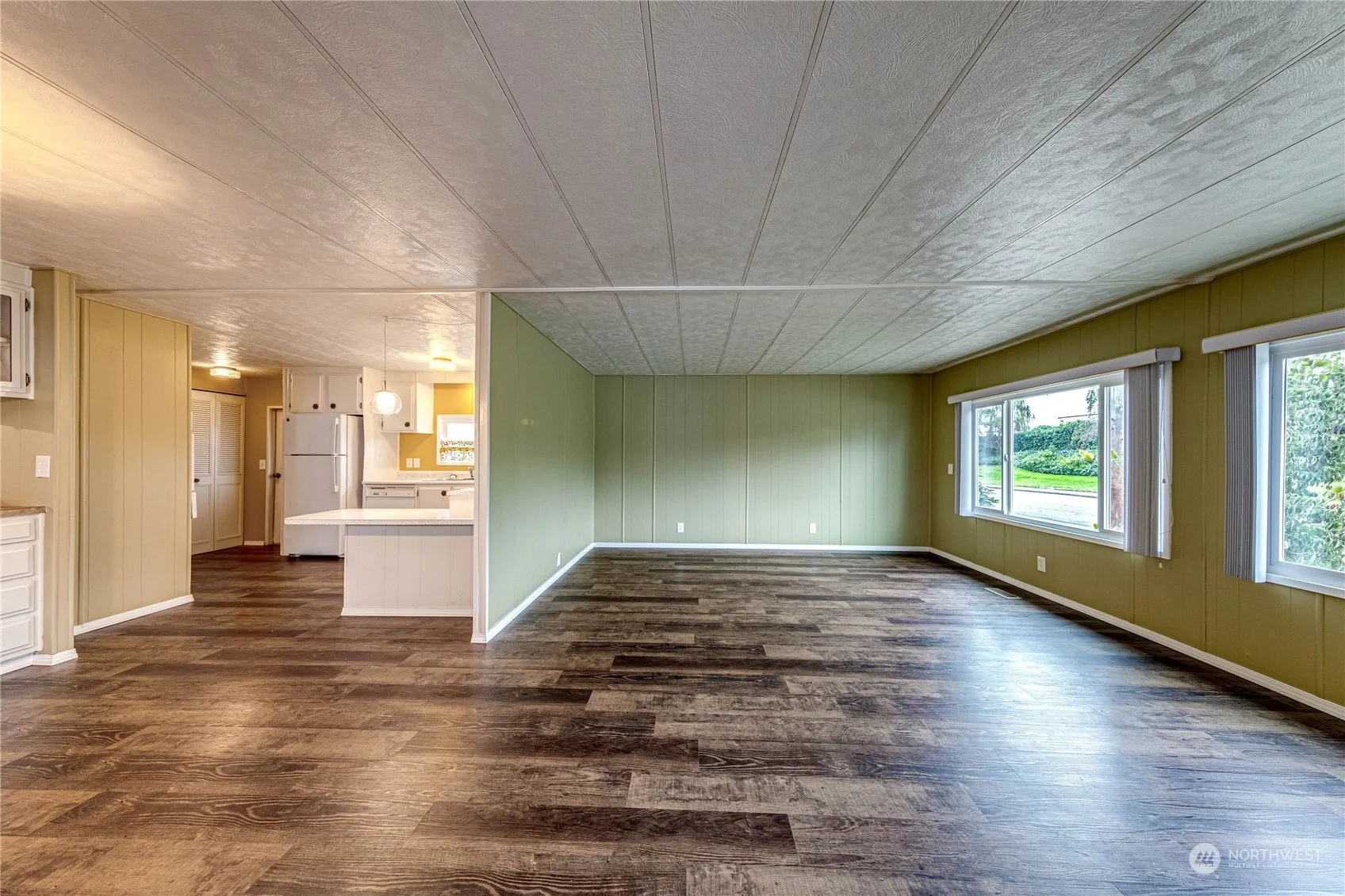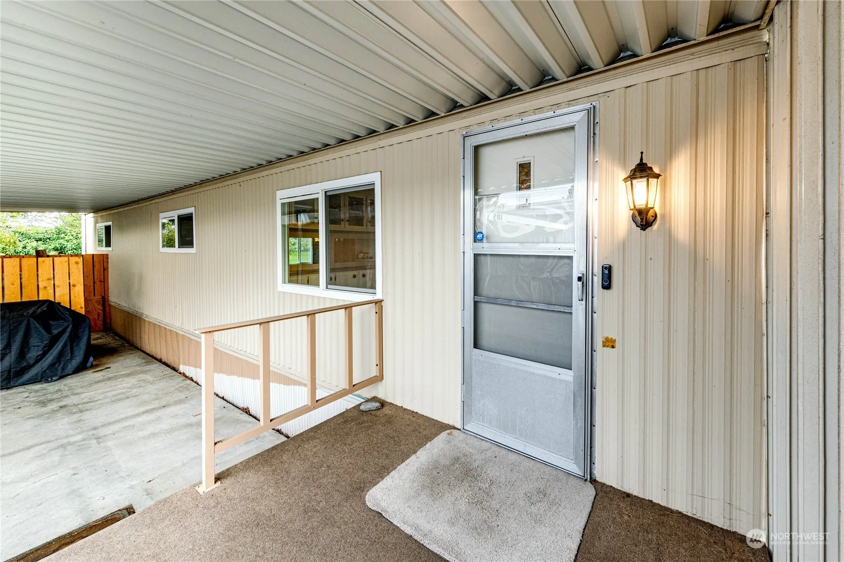 Immaculate 2BR 2BA double wide in desirable Spruce East Park, within walking distance to shopping, transportation, medical facilities, and more! Enjoy peek-a-boo mountain views, lots of parking, carport, storage room, private covered patio and deck, updated electrical, forced air, open concept living/dining/kitchen with new vinyl plank flooring throughout, formal dining area with built-in buffet and eat-in kitchen with peninsula for bar stool seating, pantry, laundry area, refreshed bathrooms, and primary with double closets! Clean, clean, clean – move right in!