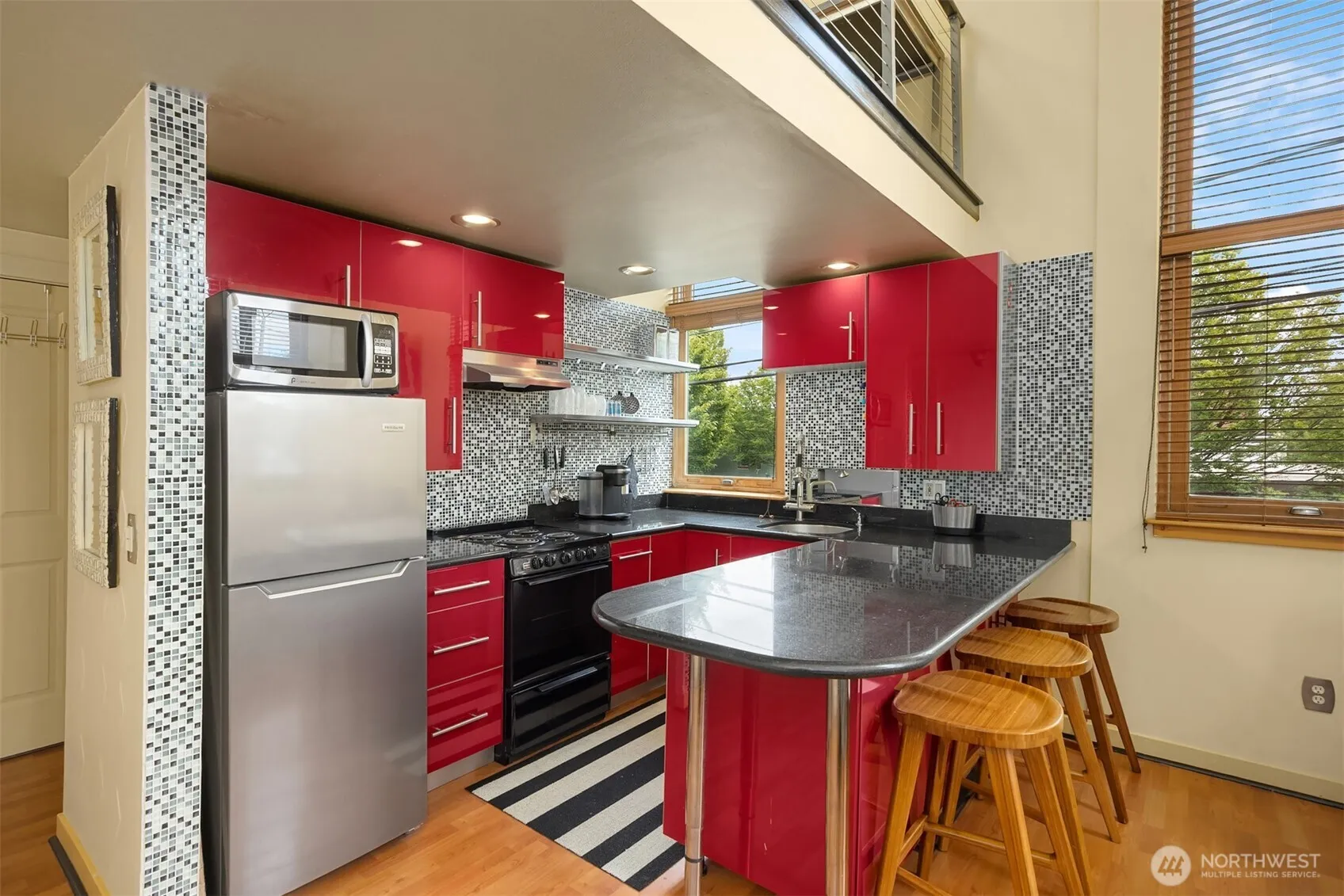 Fully furnished and full of personality, this 1BD/1BA loft in the Herons Nest offers the perfect blend of charm and style in the heart of downtown Port Townsend. With 810 sq ft, soaring ceilings, and an open loft layout, it feels bright, spacious, and inviting. The bold kitchen features modern finishes and a convenient breakfast bar, while vintage-inspired details add warmth and character. Just one block from the waterfront, ferry, shops, restaurants, and cafés—walkability is unbeatable. Located in a secure, boutique building with elevator access, shared laundry, and a dedicated parking space. Ideal as a home, weekend retreat, or investment.