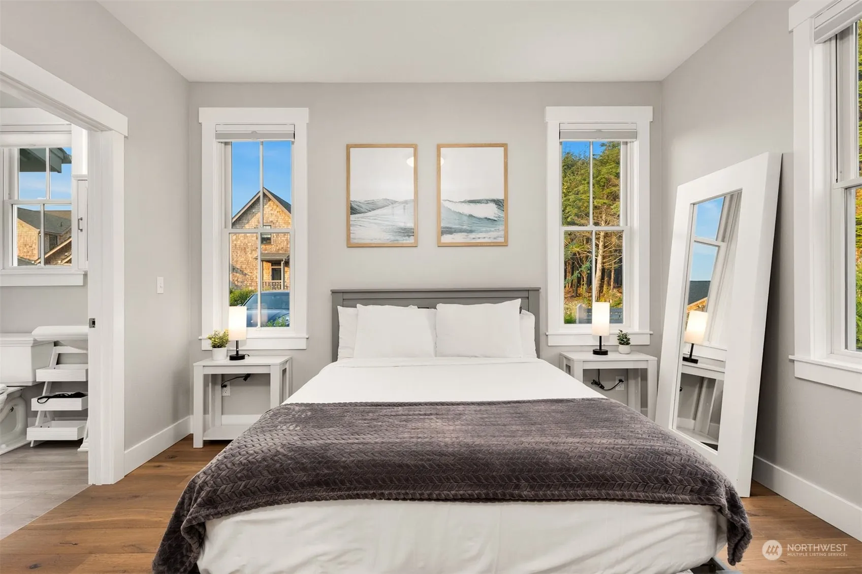 White Whale is an incredible place to get away from it all. Located on a great corner lot surrounded by evergreen trees, and almost all the windows in the home offer vibrant views of the peaceful forest setting. The open-concept kitchen, living, and dining room make gathering and entertaining a breeze, and the upstairs media room is a fun, relaxing spot. The primary bedroom is on the main floor, with an attached bathroom, second bedroom, and bunk room upstairs. Top-down, bottom-up shades are installed throughout. There is a perfectly placed covered wraparound porch with a fire pit and hot tub, and it is near trails and the Sunrise Pool. Sold furnished and ready to go.