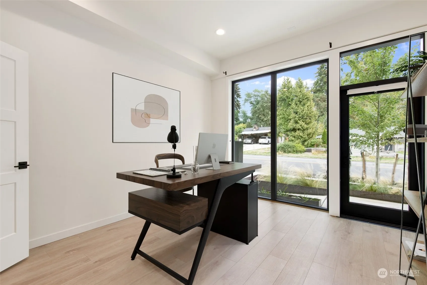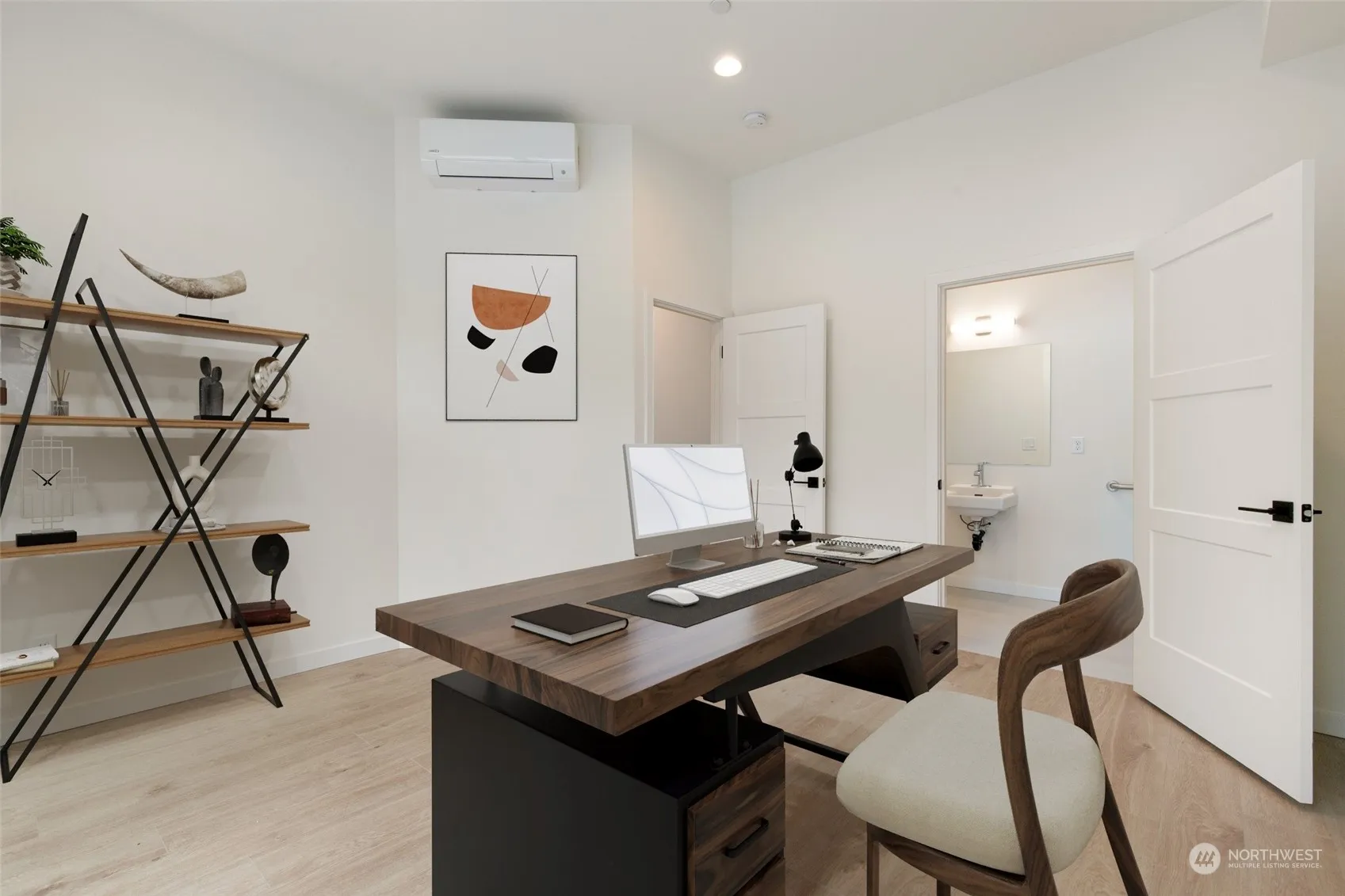 Experience modern elegance in this impeccably maintained home, built in 2022, like new! The ground-floor office space is perfect for a seamless work/live lifestyle: professionally designed and attached half bath. Enjoy an open-concept main floor with a sleek, modern kitchen featuring stainless steel appliances and designer cabinets. Both bedrooms upstairs are oversized with ensuite bedrooms + come with mini split/AC units for personalized comfort. Conveniently located just minutes from I-5, 405, Alderwood and Northgate shopping, trails, and top-ranked golf courses. Plus, a light rail station within walking distance is coming in 2024. This home offers the ideal blend of style, convenience, and functionality.
