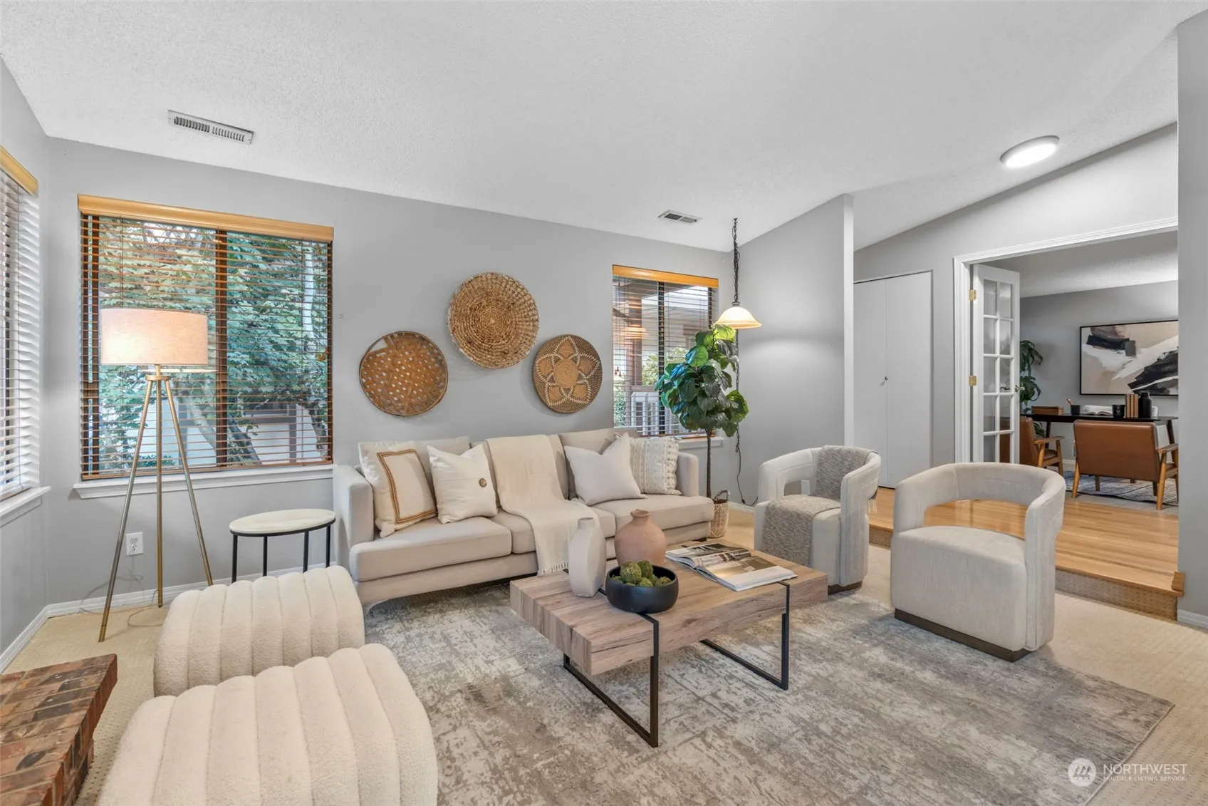 Welcome Home to single-story living in Mill Creek at the coveted Mill Run II! This updated 2 bedroom plus office/den has so much to offer. Being an end unit, it lives like a standalone home yet has all the hassle-free benefits you’d want in a strong community. Step into this open floor plan that seamlessly blends the living, dining, & kitchen areas. Vaulted ceilings add grandeur & spaciousness. Recently remodeled kitchen, bathrooms, and newer paint & carpet make moving in a breeze. New private deck through the French doors provides a picturesque greenbelt view. Tons of storage with private garage, built-ins & storage area directly under the unit. Amazing trail system, golf & more – come live the tranquil & convenient life you deserve!