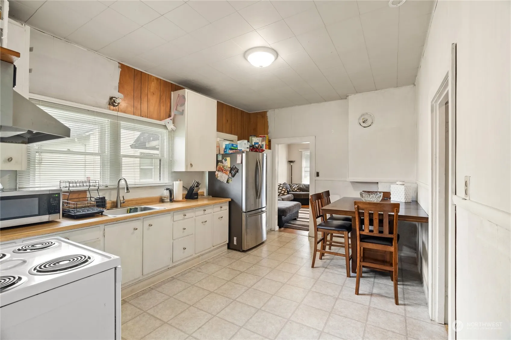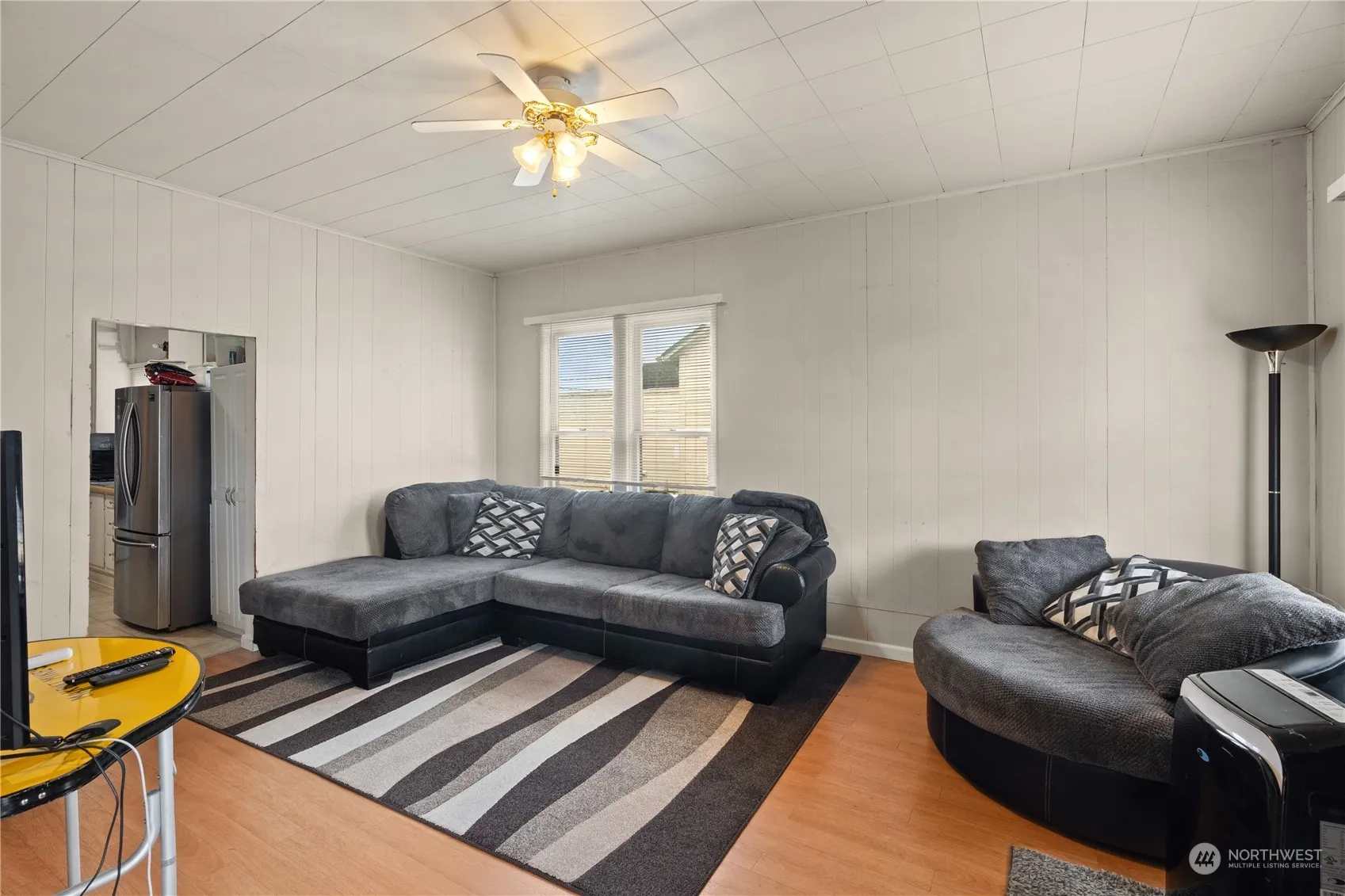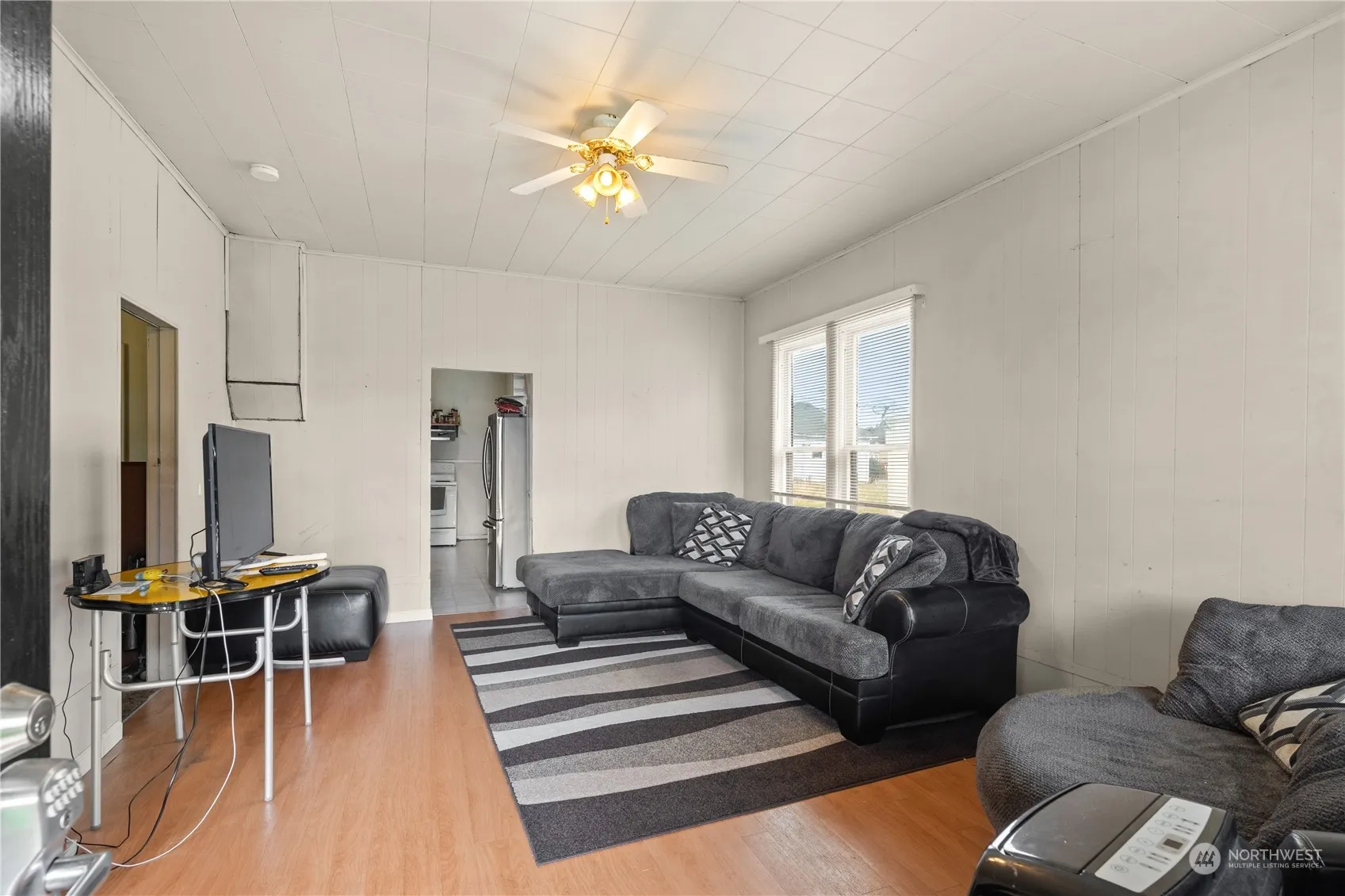 Welcome to this affordable 2-bedroom, 1-bath home with a versatile family room, currently used as a third bedroom. Main features include laminate flooring in the living room and family room, a newer roof and gutters, electrical updates throughout, and recently remodeled bathroom w/ ceramic tile floors. Additional features include covered front concrete patio, newer hot water tank w/ straps, detached utility shed, and parking pad w/ alley entrance. Schedule your showing and come take a look!