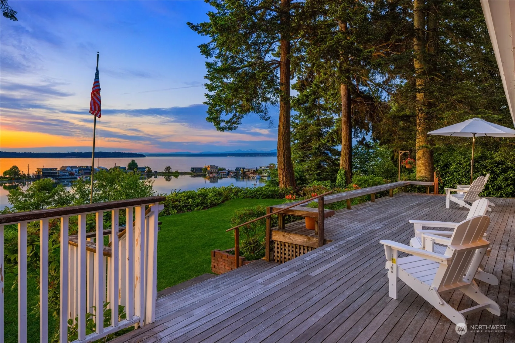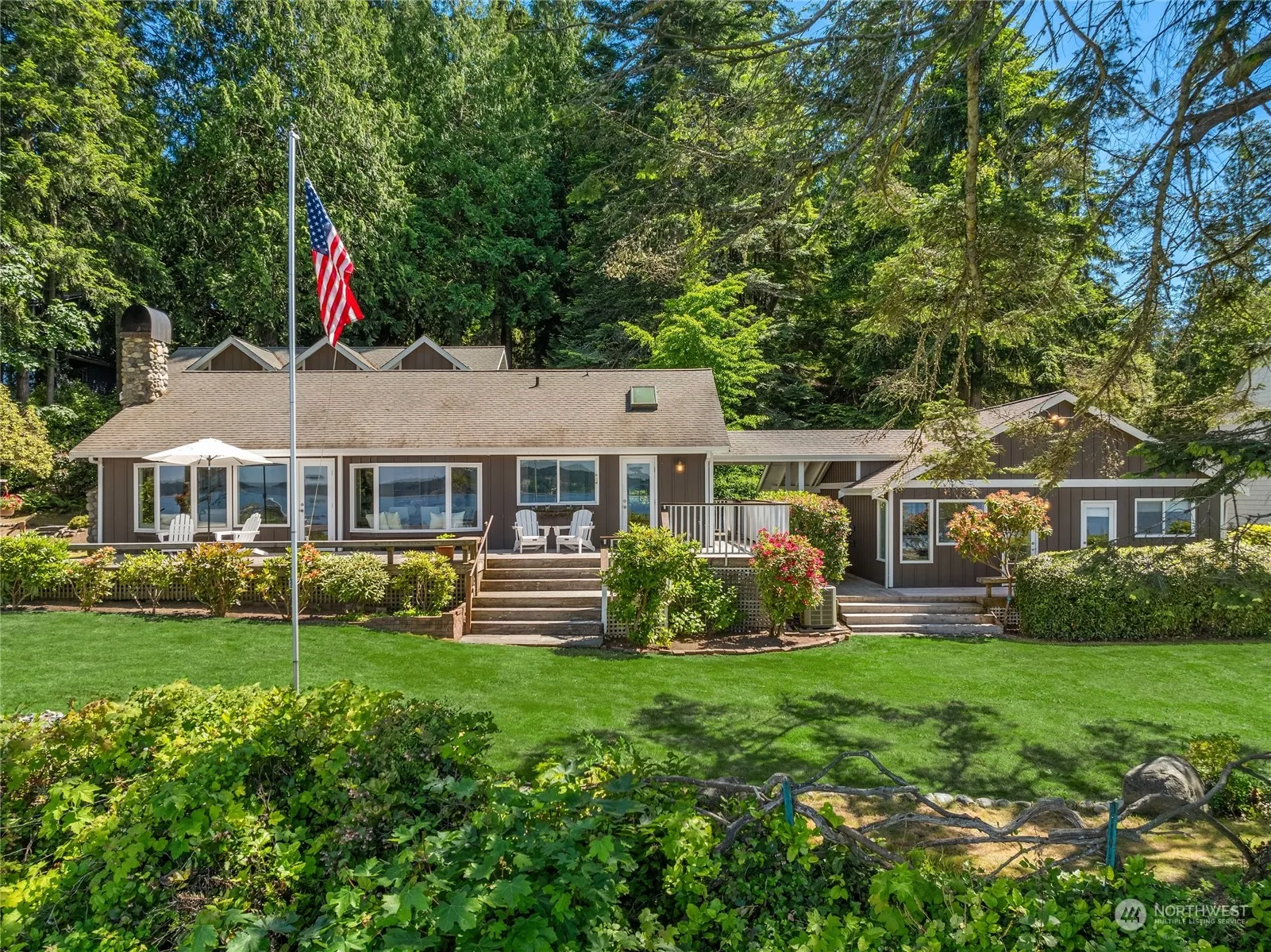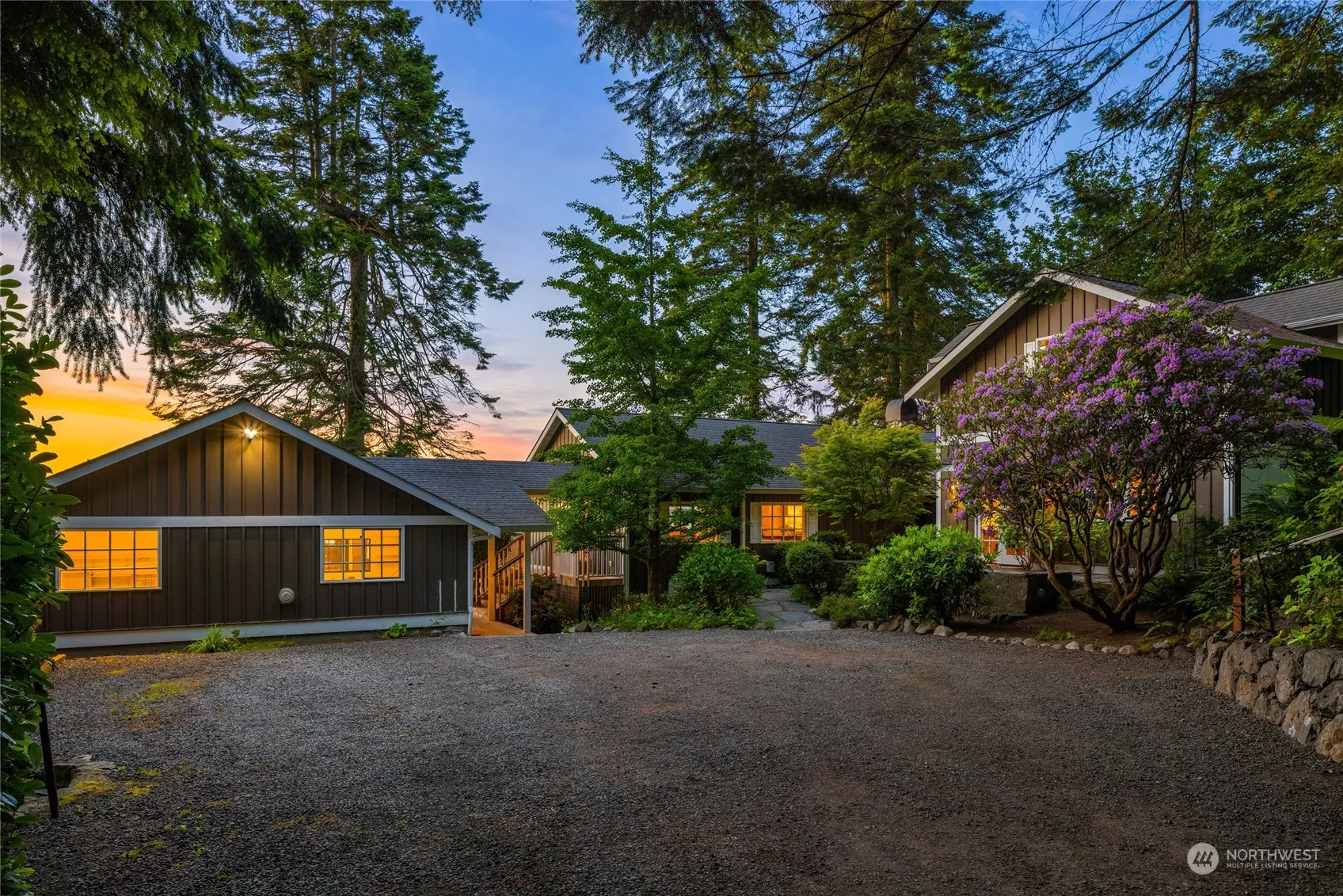 Charming waterfront home on 1.64 acres overlooking Point Monroe, the Sound & Cascade Mountains with 150 feet of easily accessible waterfront with its own covered dock & boat shed a short distance from Fay Bainbridge Park. The great room with a lovely kitchen at one end & the dining area & living/family room with its beautiful fireplace at the other end spills out onto an expansive deck for entertaining. The primary suite on the main level has it’s own private patio to enjoy morning coffee & there are 2 additional bedrooms upstairs, all with lovely water views. There is a separate shop/office with a view attached to the home by a breezeway & there’s plenty of room to spread out on the lot to create recreational spaces.