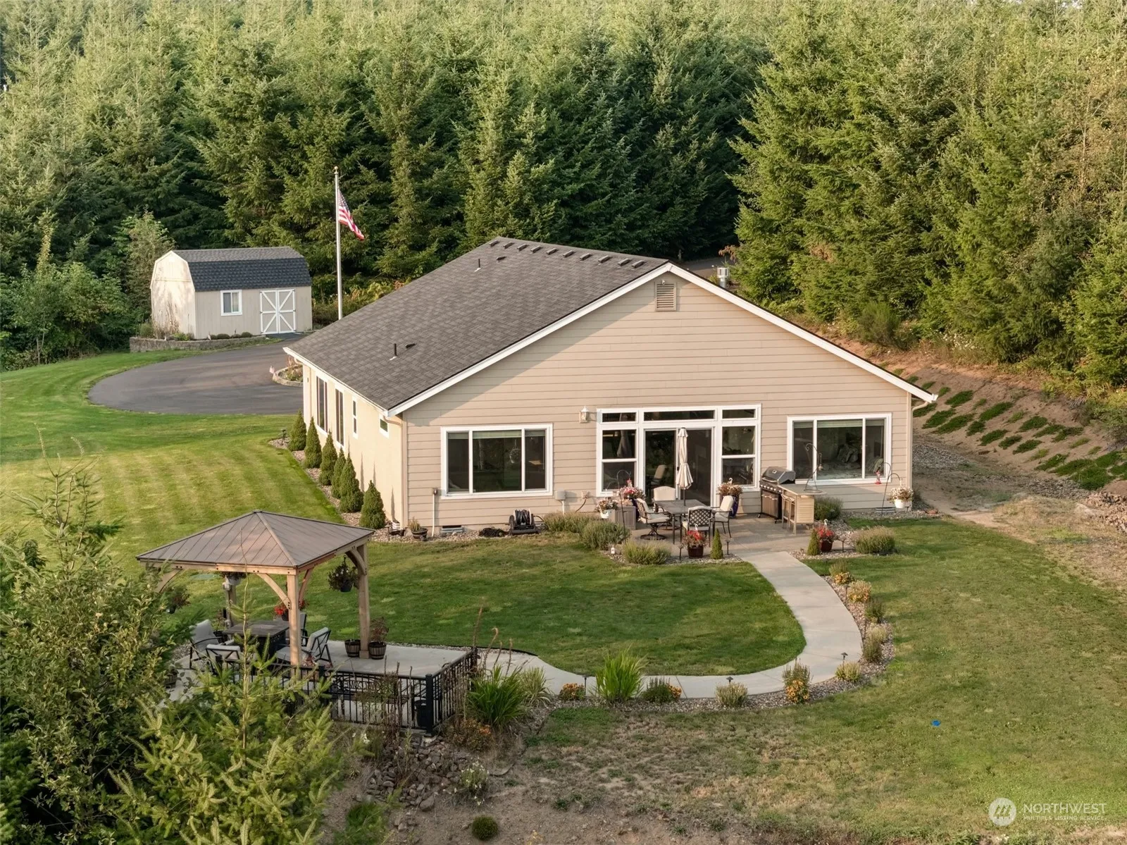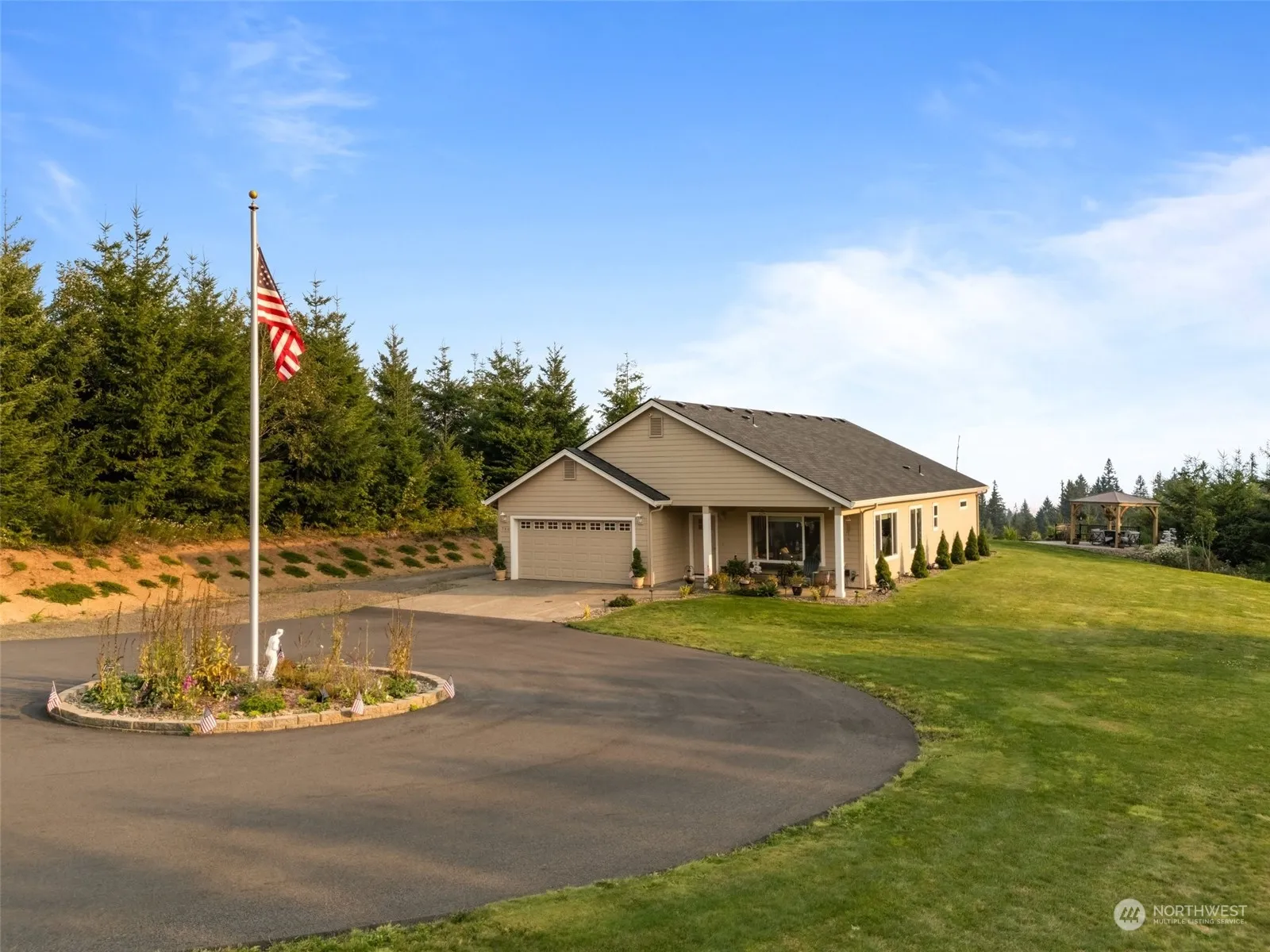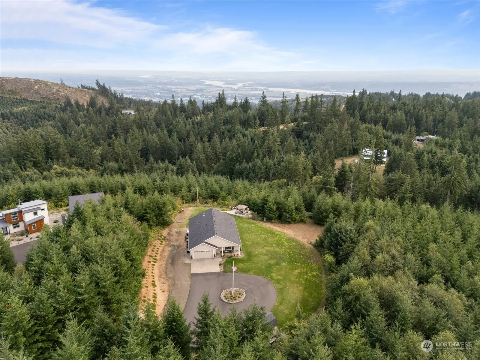 Discover your dream home at this 3 Bed 2 Bath Mountaintop paradise! This stunning property offers a true piece of heaven on 10 acres with a flowing creek. Enjoy mountain, river and sparkling city views in the evening from your backyard patio or gazebo. The welcoming single level and open living concept features 14-ft vaulted ceilings and a heat pump with A/C for year-round comfort. The primary bedroom boasts an ensuite and walk-in closet. Home is ready for a generator, all walls are insulated for temperature control. Explore recreational parks and trails within this gated community. Cul-de-sac living and peace away from the city with all the niceties of deliveries and high-speed internet. Ready for an ADU. Make this haven yours today!