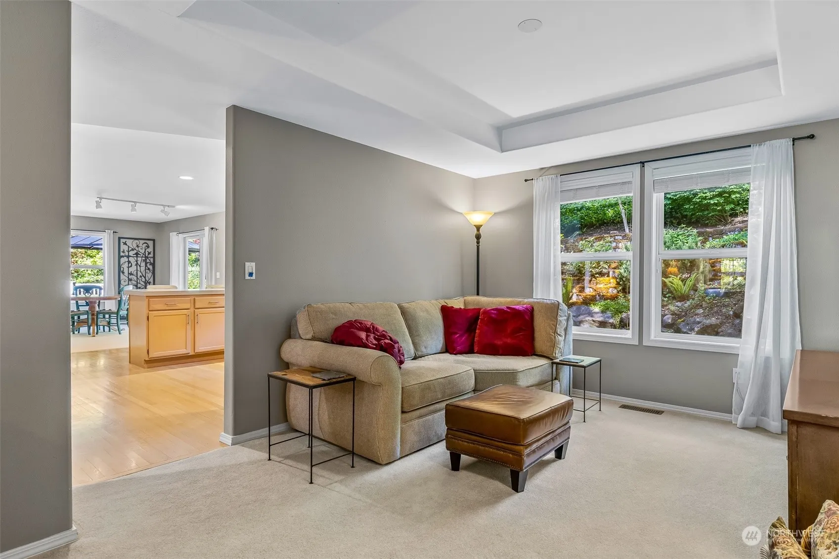 Welcome Home to your private garden oasis situated on a lush green belt and surrounded by nature. This well-maintained home is impeccable and boasts a perfectly designed, large chef’s kitchen w/ tons of storage, eating space, coffee bar, and office nook. Rest and rejuvenate in the spacious Primary Suite with its vaulted ceilings, walk-in closet, and 5-piece ensuite bath. Entertain guests in the formal living and dining rooms or out on the deck underneath the gazebo. This home also features a low maintenance yard, an oversized 2 car garage with extra storage space and is wired for a generator. Close to beaches, parks, restaurants and even a local brewery. Minutes from Downtown Seattle, freeways, SeaTac Airport & public transit.