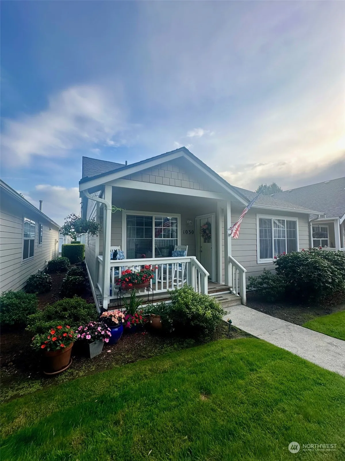 Price improved and absolutely adorable with so many upgrades! Fresh carpet, luxury vinyl flooring, new appliances, attic access with ladder and storage added, a new washer/dryer, updated lighting and electrical, and upgraded blinds. Newer water heater and new toilets add to the comfort. Roof is only two years old and everything is well maintained! Enjoy cozy cottage-style living in the desirable Cedars 55+ community, complete with fantastic neighbors! The layout is fantastic with the primary having an ensuite bathroom and the guest room as well. Let the HOA handle exterior maintenance while you enjoy the clubhouse right across the street or relax on your front porch. Central location with easy access to parks, the library, freeways & more!