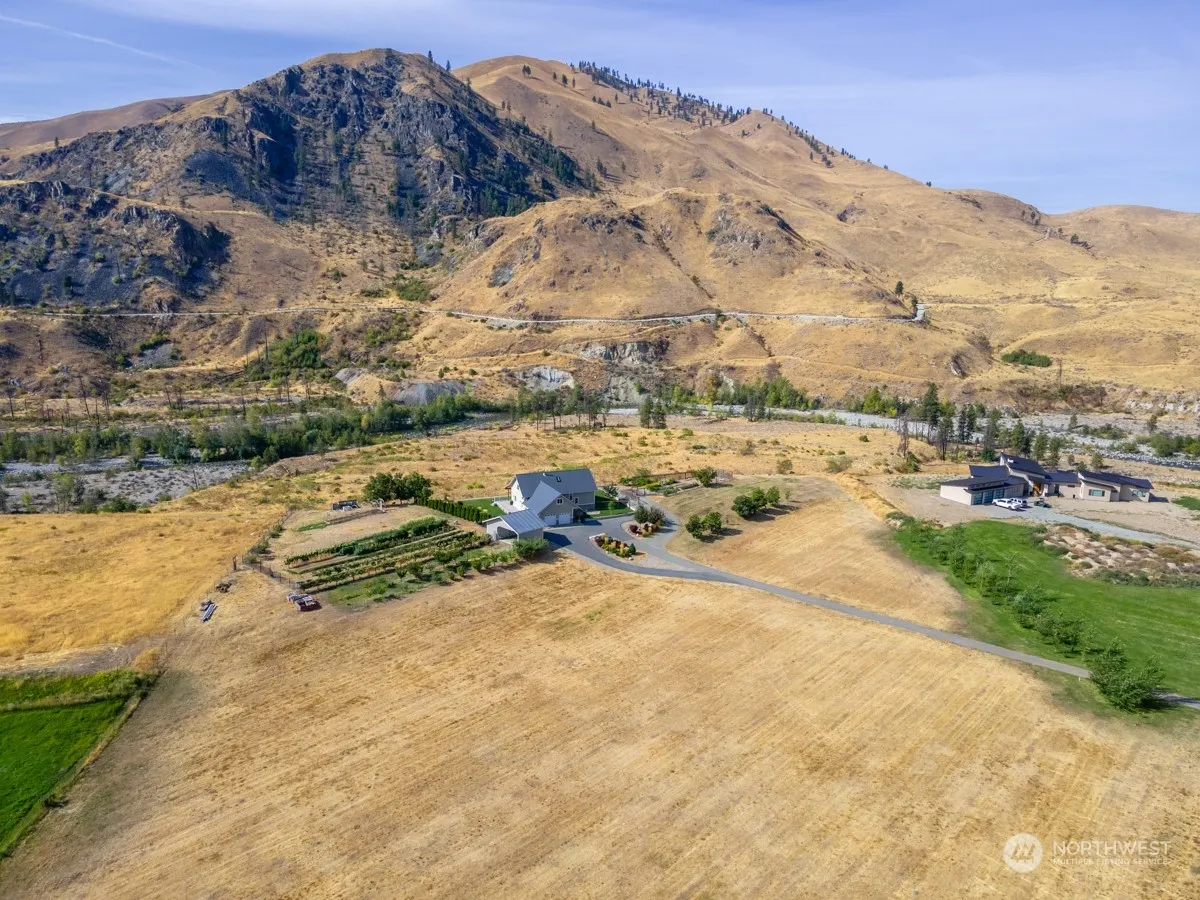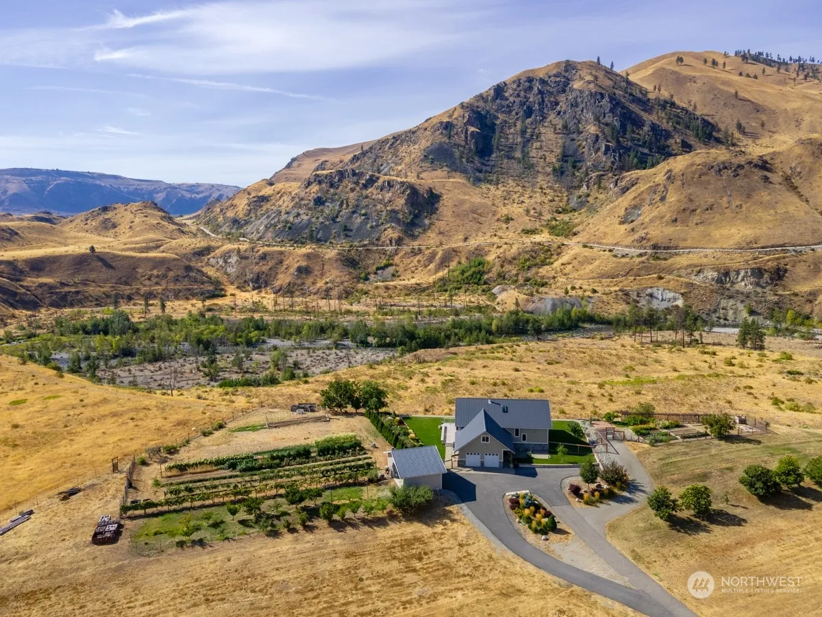 Discover your private oasis with this stunning 3-bedroom, 2.25-bath home nestled on 5.22 acres, just minutes from town and all amenities. Overlooking the serene Chelan River, this property boasts expansive territorial views. Home features solid oak floors, granite countertops, soft close maple cabinetry, and a refrigerator room for extra cold storage. Relax and take in the nature around you in the large sunroom or entertain on the wrap-around deck. The property includes a shop, beautiful flower gardens, and a variety of fruit and nut trees, as well as grapes and berries. This home offers the perfect blend of tranquility and convenience.