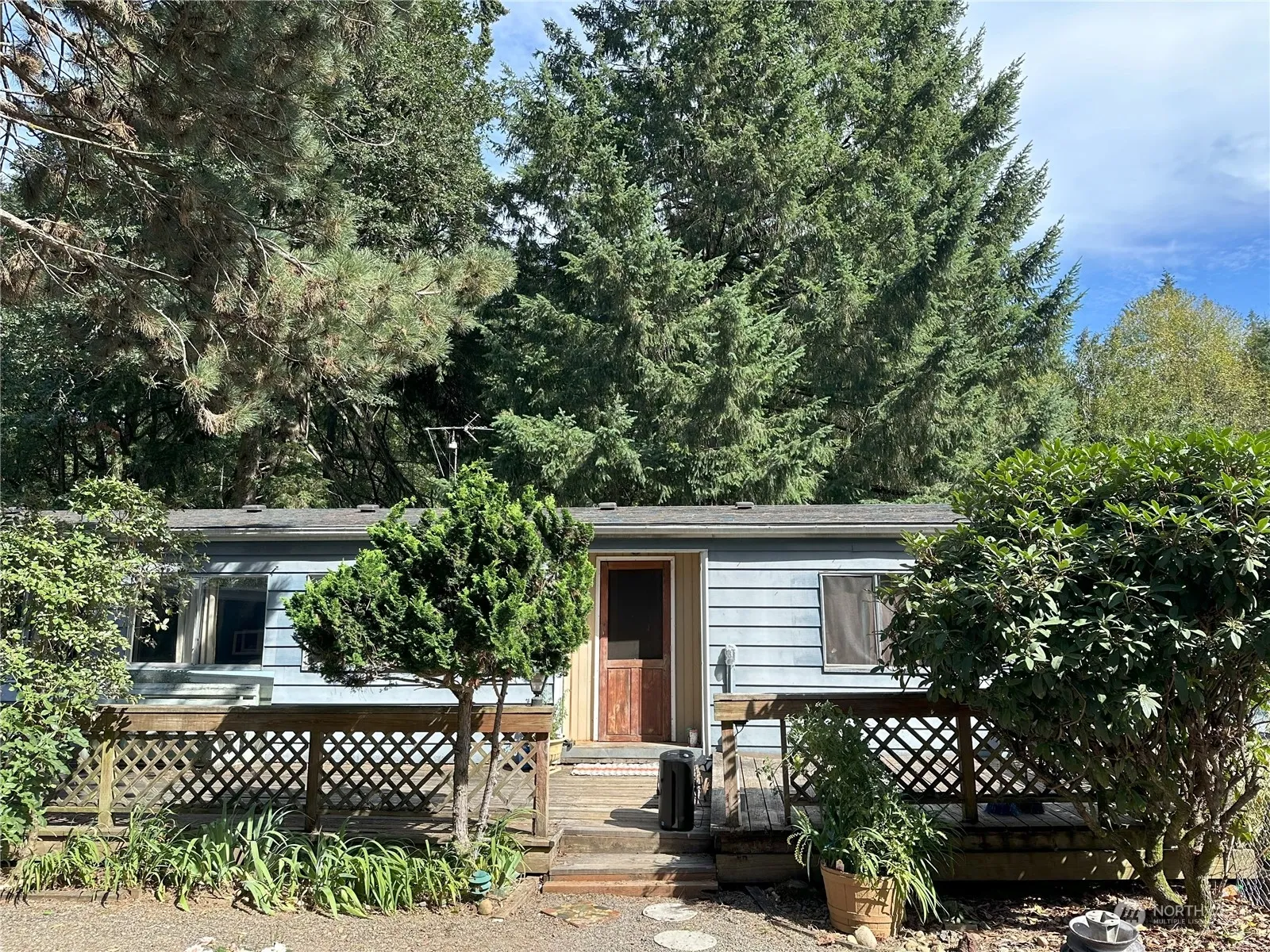 Opportunity awaits on this prime flat 1-acre property at the end of a private drive just minutes to town. Partially fenced property includes an existing 1430sf manufactured home, an awesome 1800sf shop plus oversized detached 2-car garage to provide loads of parking & space for your RV & toys. Rehab the existing mobile which is 3 bedrooms, 2 baths, or build your dream home. Well, septic, wood stove & forced air heat pump for heating and cooling. Fenced front yard; perfect to keep your pets in. Additional enclosed gardening space. Close to town, schools & parks, with no HOA. Don’t miss this one!