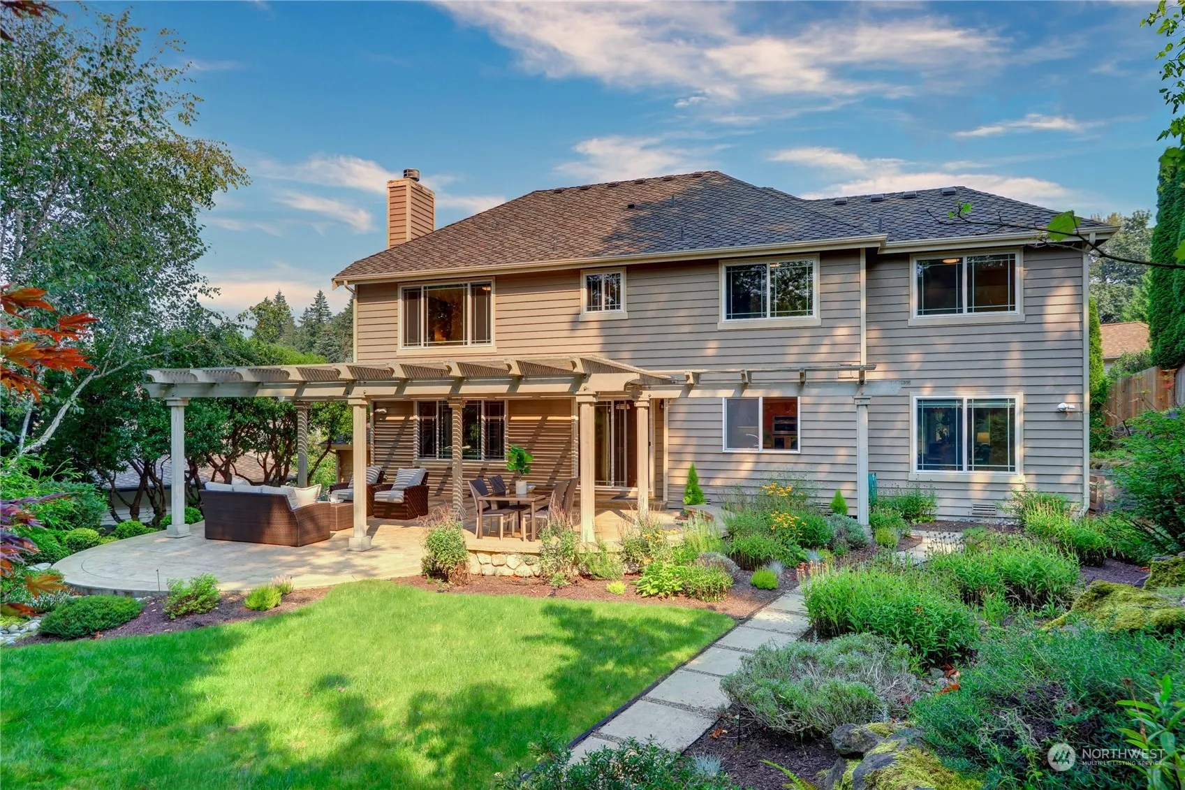 Enjoy life at the Vinyard at Olympus with this delightful property updated in systems, structure, and style on a quiet cul-de-sac close to the center of Newcastle. This marvelous home features a gracious living room and formal dining room with coffered ceilings and molding accents, a large custom kitchen with maple cabinets, under cabinet lighting, Italian tile counter tops with rolled tile edge, stainless steel appliances, and a 2nd eating space, 4 bedrooms including a marvelous primary suite with 5-piece bathroom, a terrific family room with a gas fireplace and access to the extraordinary back yard, patio and gardens – custom designed with a colored stamped concrete patio and shade trellis. Also offering a den, and a 3 bay garage.
