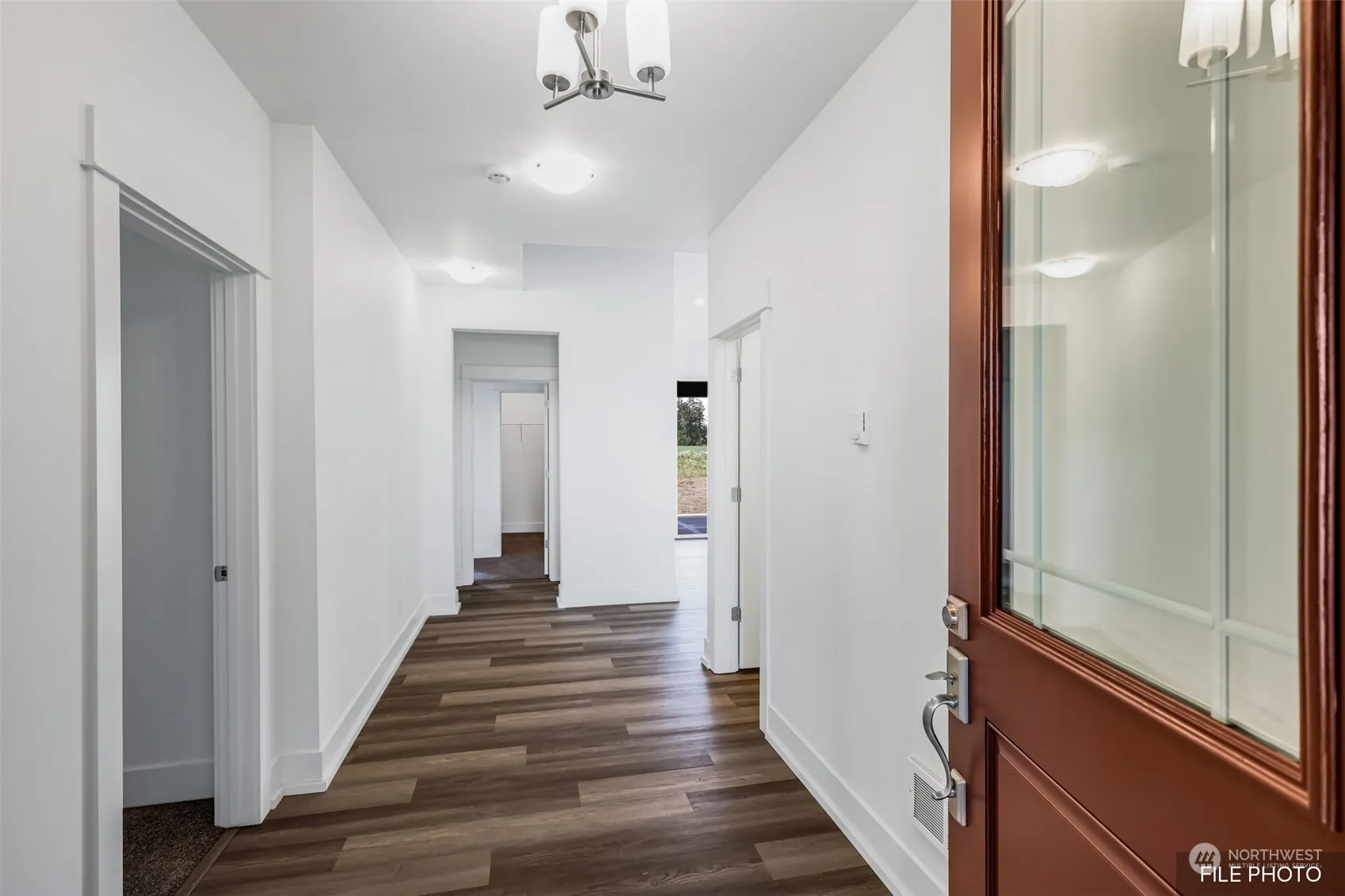 Experience modern and functional living in the Stockton by Azure Northwest Homes. This 3-bedroom, 2-bathroom, exudes contemporary elegance and comfort throughout. Enter the luminous open-plan living area and gaze out your double slider to see the covered back patio, which is ideal for hosting and unwinding in solitude. Inside, tall, vaulted ceilings in the great room create an expansive atmosphere, flooded with natural light from oversized windows. The kitchen features beautiful countertops, shaker door cabinets, stainless steel appliances, and a functional pantry. Step outside to a professionally landscaped front yard, enhancing the home’s unique exterior. The Stockton’s 3-car garage provides plenty of parking and ample storage.