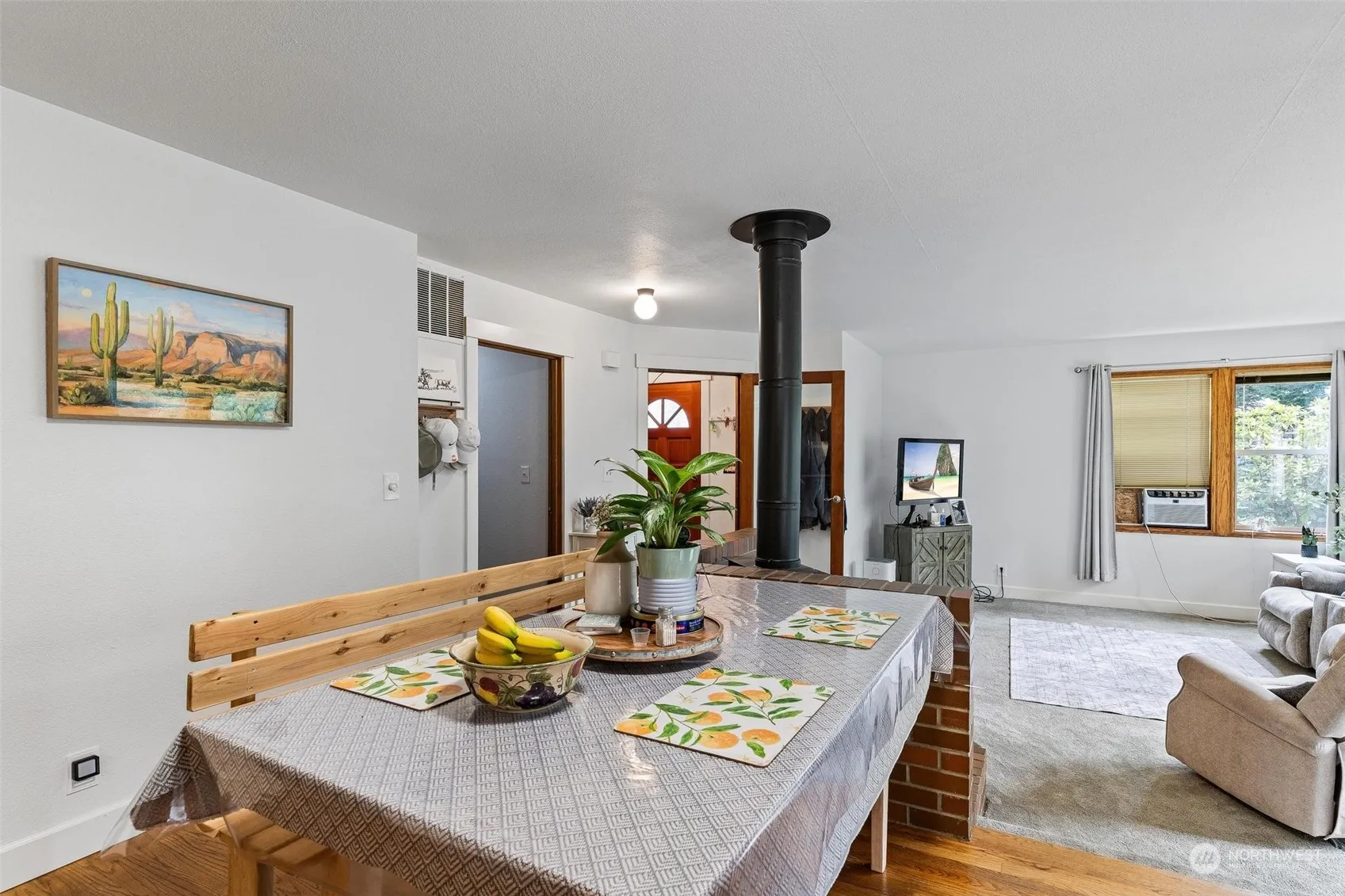 Welcome to your new home, situated on a full acre lot! This property features a large shop over 1,000 sq ft, perfect for storage, projects, or hobbies, along with a convenient shed for additional storage. The home boasts a newer roof replaced in 2019.. Inside, you’ll find a freshly painted interior (2024) and windows that invite abundant natural light, highlighting the home’s beautiful sunroom – perfect for relaxing or entertaining. The kitchen is fully equipped, with all appliances included, making this home move-in ready. Located outside of the flood zone, this property offers additional peace of mind. Enjoy a variety of mature fruit trees on the property and the convenience of being just 5 minutes from town!