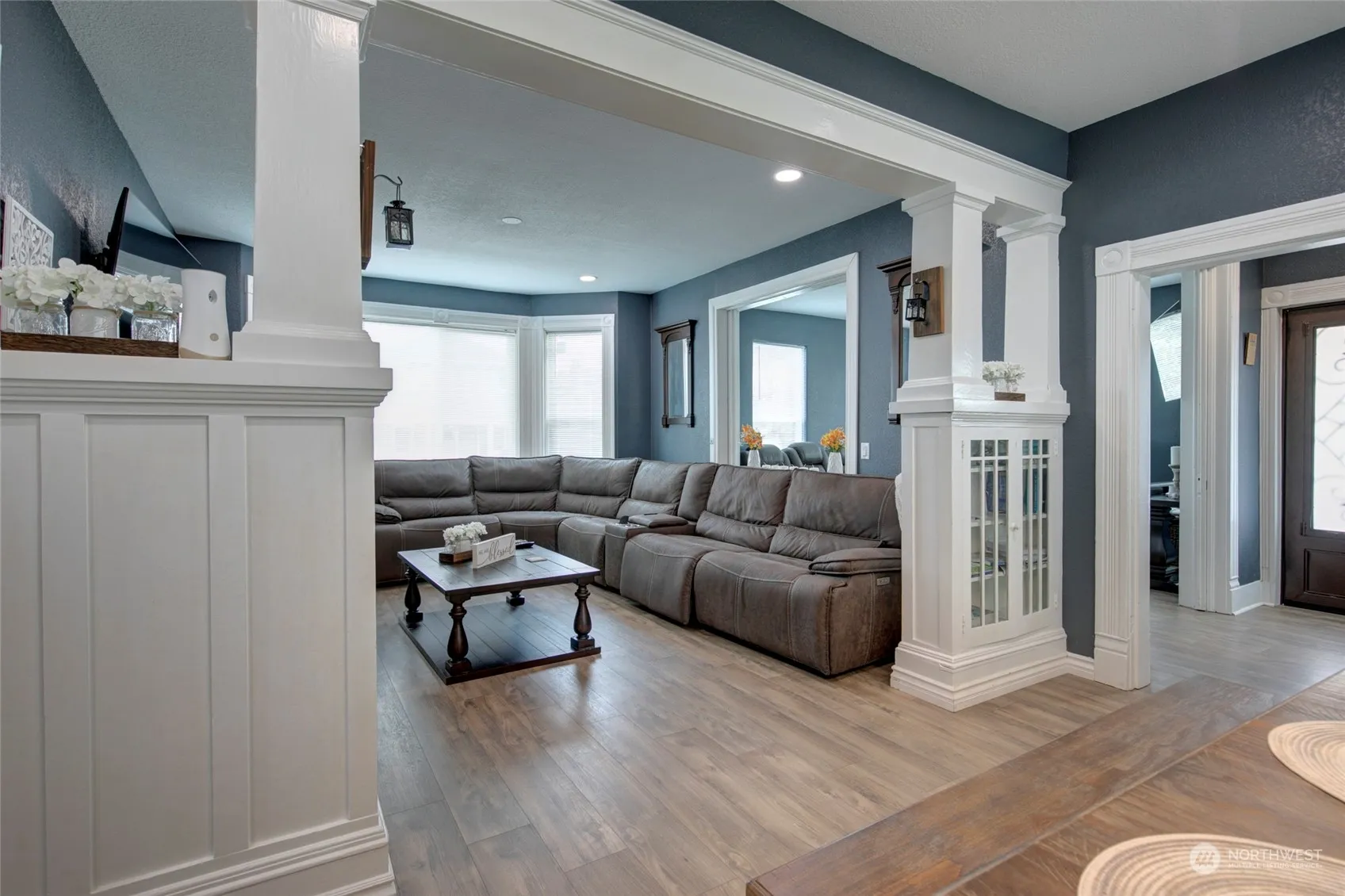 Check out this tastefully updated, 3 bed, 1.75 bath, large 2 car garage home in the heart of Hoquiam. Built in 1900, this charming home offers… original moldings & built ins, dual staircases, parlor w/ oversized sliding doors, full dining, living room w/ alcove, luxe kitchen w/ large island & seating, quartz countertops, slow-close cabinets, stainless steel appliances, laminate flooring throughout, storage for days, & a main floor bathroom w/ tiled walk-in shower & double vanity. Head up stairs to find 3 full bedrooms, laundry, & a lavish bathroom w/ urinal, jacuzzi tub, & double vanity. This smart wired home includes a security system & lustrous metal reinforced exterior doors. Great location, corner lot, & close to amenities.