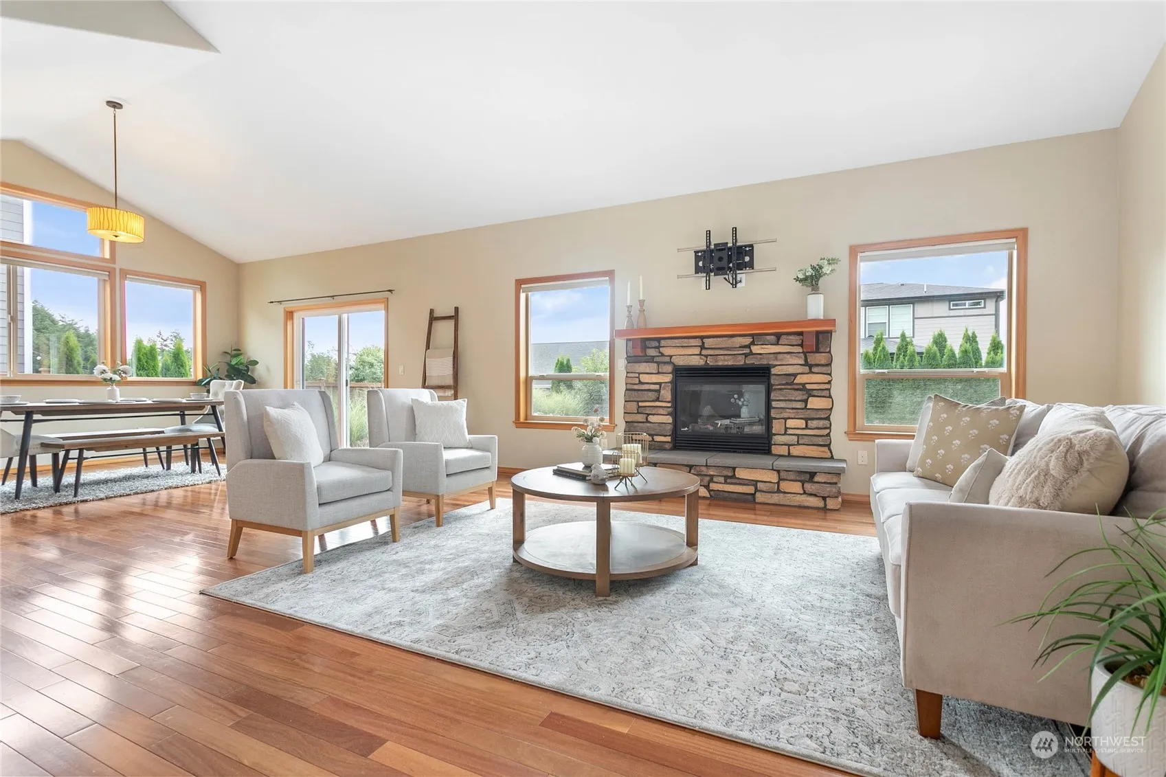 Sought after Stoneyfield home on quiet cul de sac – one of Ferndale’s best locations. Southern exposure, vaulted ceilings, large windows & open main floor plan make this home sing. True single floor living with large primary suite & laundry on the main floor. Primary suite features jetted tub, separate shower, polished carrera bathroom floor, dual sinks & walk in closet. Upstairs: two spacious bedrooms, a third extra large bedroom or bonus room and full bathroom. Extras everywhere: granite counters in kitchen and bathrooms, teak flooring, A/C, oversized garage, large yard with drip irrigation and more. Be sure to see this one in person before it’s gone!