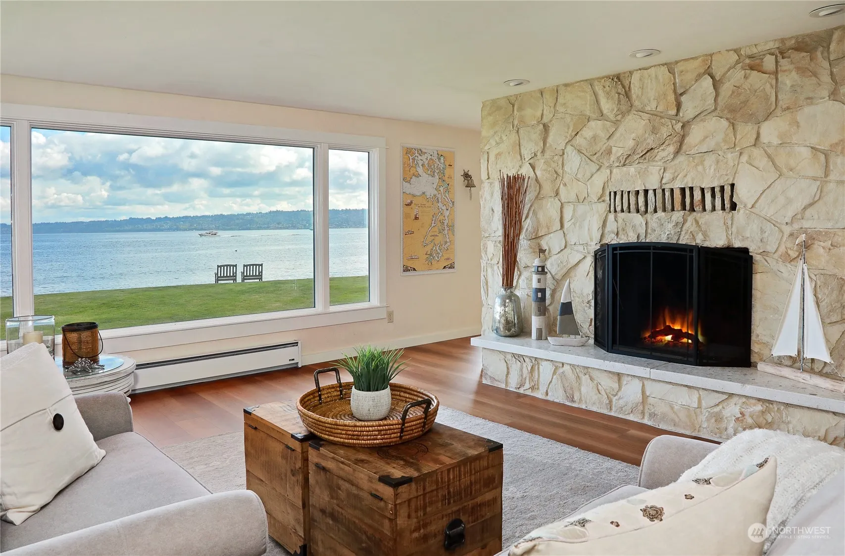 Stunning 180-degree view of Possession Sound from Mt. Baker to Mt. Rainier, from this beautifully maintained and updated no-bank waterfront home. A rare find on coveted Columbia Beach! Home features 2-oversized bedrooms, expansive living room, dining area, and flex room that can be utilized as a media room, office, and/or additional sleeping area. The home has been thoughtfully updated with new flooring, interior doors, paint, trim, fixtures, and appliances, and features high quality wood-clad Anderson windows. Both the roof and septic system were replaced in 2012. This amazing home is ready for you to move in and enjoy the magic of Whidbey Island beach life, with crabbing, clamming, and fishing just outside your front door. Welcome home!
