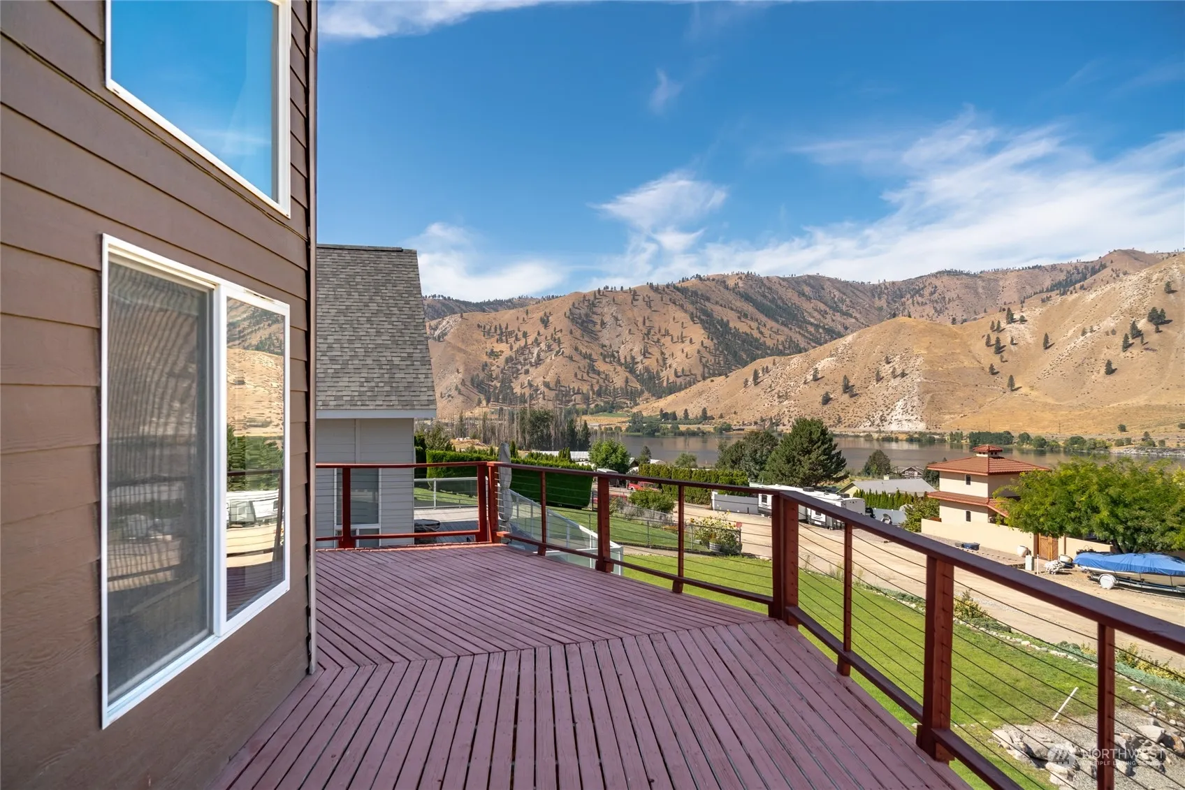 Enjoy this charming community riverfront home, perfect for entertaining friends. It has hosted many friends over the years and it is ready for the next owner! Rarely available, it offers GORGEOUS river and mountain views from a large deck with spectacular sunsets. Featuring 2 bedrooms, 1 full bath, 1¾ bath, ½ bath, a bonus room with office/sleeping space, and a private 3rd-floor loft, there’s ample space for everyone. Turn-key with included furnishings. Additional parking for boats, cars, and campers plus a 2-car garage. The friendly community features a sandy beach, grassy park area, boat launch, bathrooms, and dock. Conveniently located 20 minutes from Chelan and 40 minutes from Wenatchee. Don’t miss this gem!