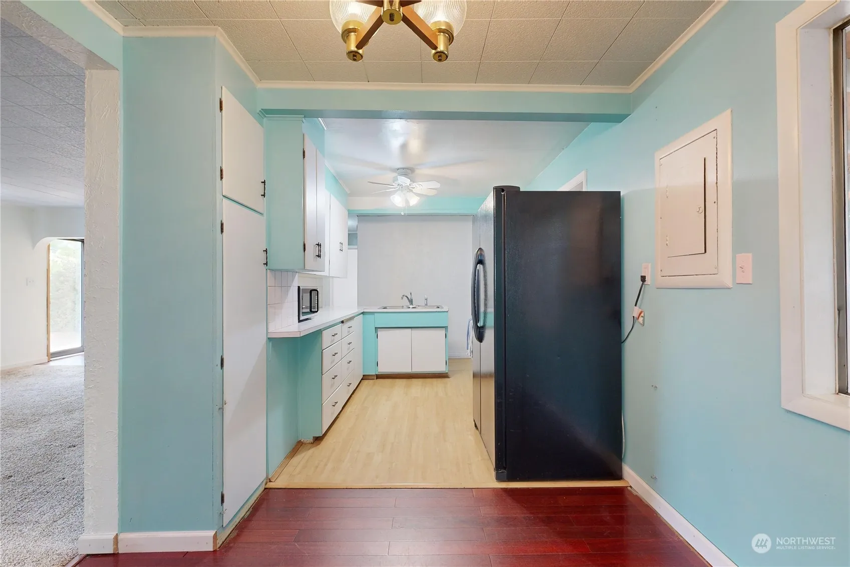 Endless potential in this charming Dayton home! Featuring a spacious living room, adjoining kitchen/dining area, and a primary bedroom located away from the other bedrooms. Laundry room includes additional storage area. The extensive backyard offers a tremendous space that includes a covered porch, privacy fence, tool shed, and alley access- the possibilities are wide open. Plenty of space to build a shop! Ideally located just blocks away from local schools, hospital, and city park. Home being sold as-is.