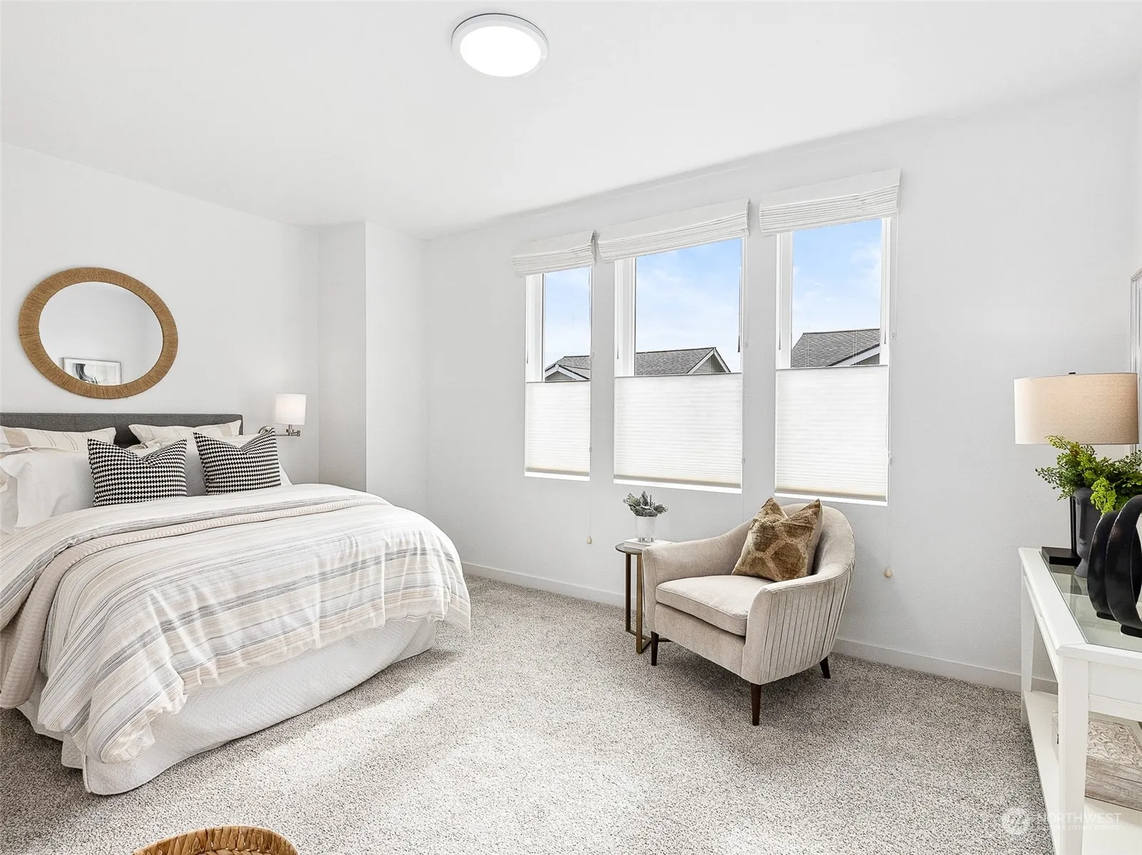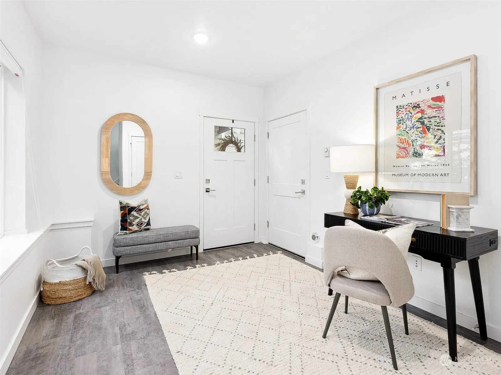 Embrace a new lifestyle at Madison Place—a modern townhome in the vibrant heart of downtown Winslow. Built in 2021, this lightly lived-in residence offers two spacious en-suite bedrooms, a main-floor office, an expansive great room, and an attached two-car garage. The kitchen is equipped with KitchenAid stainless steel appliances, quartz countertops, a breakfast bar, and a generous walk-in pantry. The home also includes designer blinds and an energy-efficient heat pump with A/C, ensuring year-round comfort.The community of 18 single-family homes offers low maintenance and an exceptional location. Enjoy a walk to nearby shops, restaurants, and theaters, or take a short stroll to the Seattle Ferry. Benefit from low $50 monthly HOA dues.