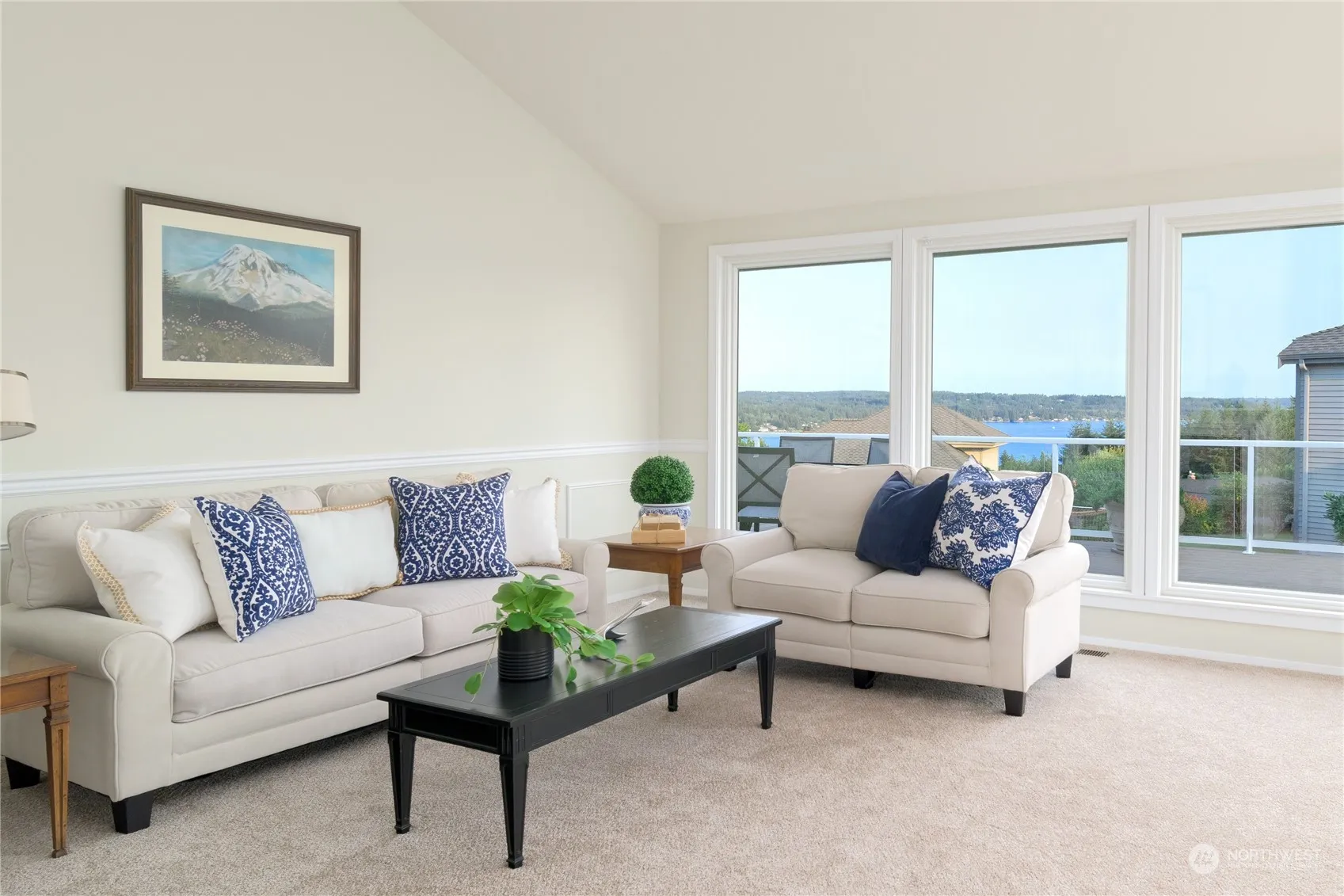 Charming turnkey single story located in the coveted Emery Ridge with beautiful views of Mount Rainier! This 3 bed 1.75 bath home has a delightful floor plan with great ambient light throughout. Modern finishes with a remodeled kitchen, stainless steel appliances, and new carpet and paint plus room for an office off the kitchen. Beautifully updated primary bathroom with double sinks and custom tile in the shower. Enjoy enchanting and peaceful PNW mornings or evenings on the southeast facing backyard deck and revel in the views of the Puget Sound and Mount Rainier. Easy to maintain yard with plenty of sun for a garden and flower options galore. Located near all the amenities that Silverdale has to offer and close to the ferry and bases.