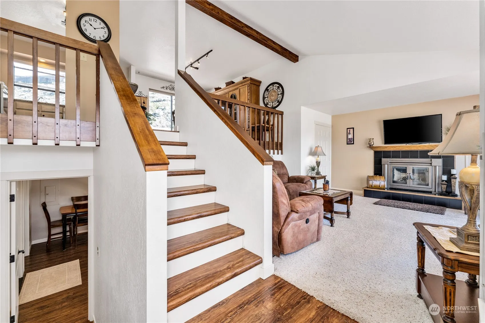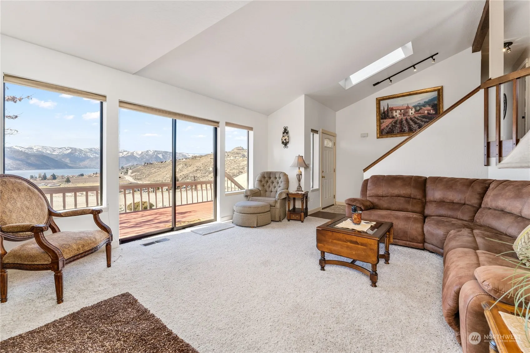 Imagine waking up to breathtaking sunrises and unwinding with stunning sunsets right from your front deck. This multi-level home offers unobstructed views of Lake Chelan and the surrounding mountains yet only 6 blocks to walk to the park and boat launch. Feel the charm with the open-concept kitchen and dining area open to the living room. Three bedrooms and two and a half baths, space for everyone. The lower level features a laundry room, half bath, and a large den or family room. Convenience abounds with a deep 2-car garage. Enjoy a well-maintained flat yard with a storage shed. Golf enthusiasts will love the proximity to the City Golf Course. Plus, you’ll have easy access to the lake and downtown Chelan.. There’s space for RV or boat.