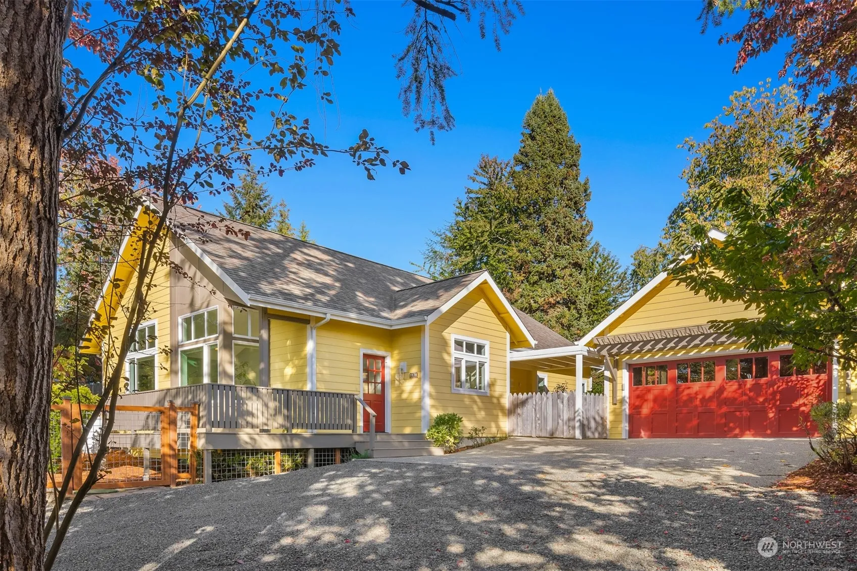 Discover this custom rambler, built in 2005—no steps or stairs! Move-in ready, immaculate home welcomes you w/ warmth. Open the door to a sunlit floor plan w/ soaring ceilings & oversized windows. West-facing big sky views & stunning sunsets + a little peek at the Olympics! The heart of the home is a remodeled kitchen w/ modern appl., bar seating & updated fixtures. Entertaining is easy across hardwoods in open dining & living areas. 3 beds offer flexible use as an office or studio. Outside, enjoy low-maintenance Hardiplank siding, private grounds, a front deck & back patio. An oversized detached garage connects via a covered breezeway. Located on Winslow’s western edge close to parks, trails, beaches & more. Don’t miss this charming home!