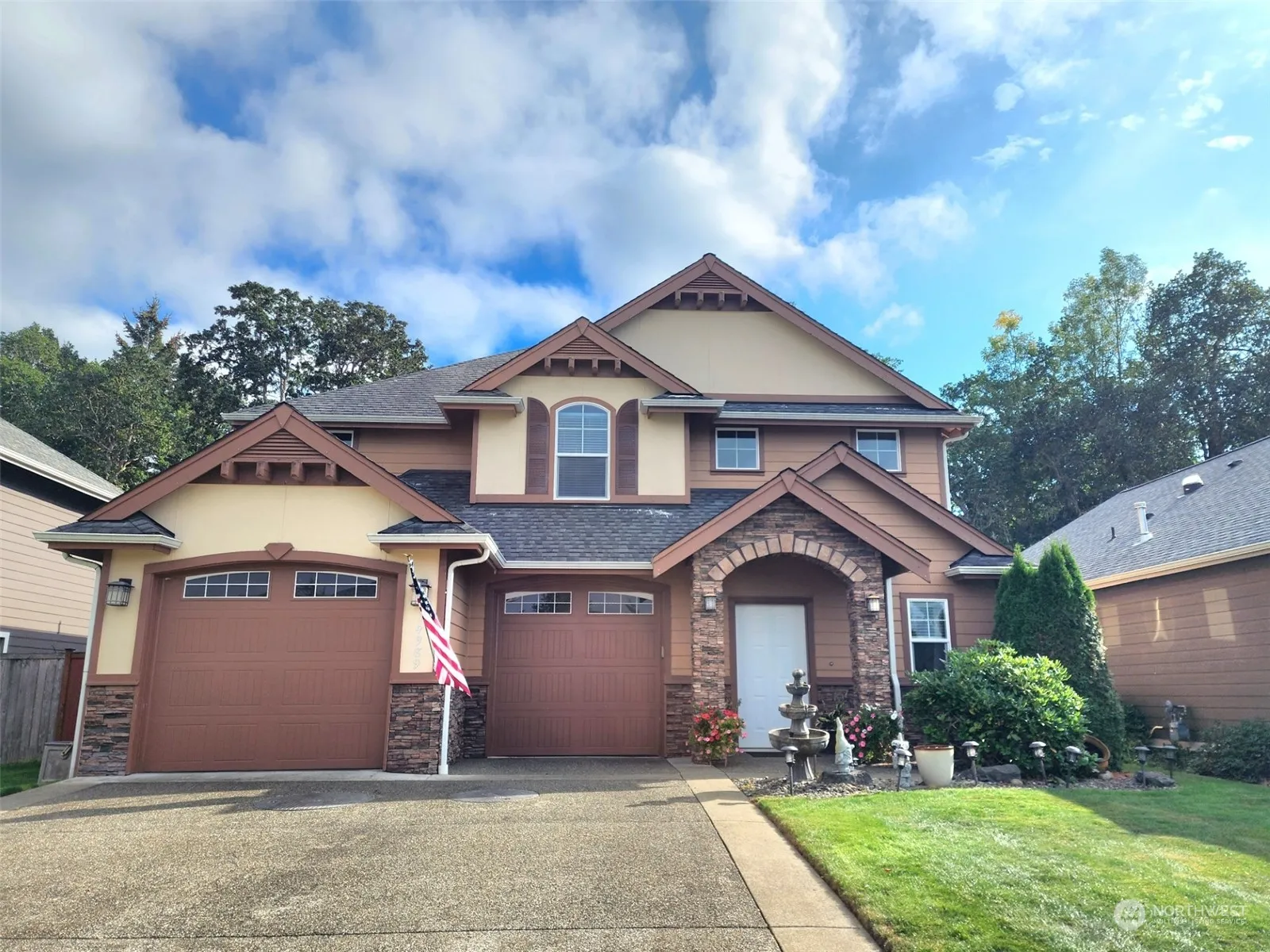Welcome to Vintage Greens! Charm and character galore in this French Country design – complete with stucco and stone accents. Step into this beautiful home with an open, two story vaulted entry way. Custom features include wainscoting, cove ceilings, crown molding and new flooring. Gourmet kitchen with granite, new stainless appliances, large center island, office alcove and gleaming tile floors. Generous family room with cozy gas fireplace that opens to a glorious outdoor setting. Covered and uncovered seating areas & tiled floor . Enjoy the lush green spaces of the Tahoma Valley Golf Course complete with a Mt Rainier view! Four bedrooms on upper level with a spacious loft area. A truly special place to call home.