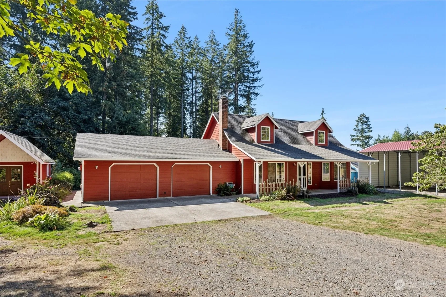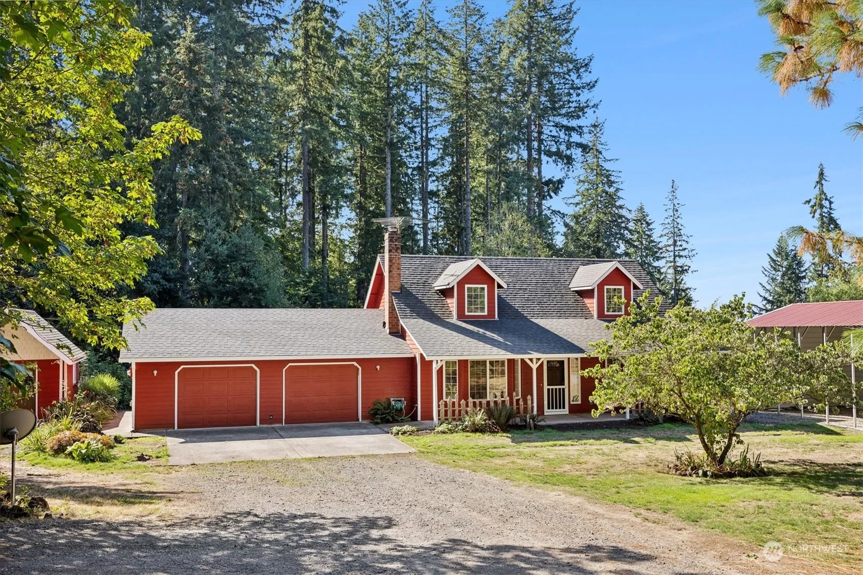 Charming 2-story home set on 2.5 wooded acres, perfect for unleashing your creativity. The main floor features a primary suite w/a walk-in closet, dual sinks, shower, & jet tub. Enjoy a cozy living room w/a fireplace insert, a dining area leading to a beautiful backyard, & a kitchen w/an eat bar and pantry. Upstairs, find 2 guest bedrooms & a full bath. The property offers a covered front patio, a deck extending to another patio w/a potting shed, a 16′ x 20′ tool shed, a large dog run, horseshoe pits, & a private trail. Plus, there’s a 20′ x 30′ RV parking area w/50AMP hookup. With garden space, fruit trees, a newer roof,& fresh exterior paint, this home combines tranquility w/adventure near Battle Ground Lake. Schedule a showing today!