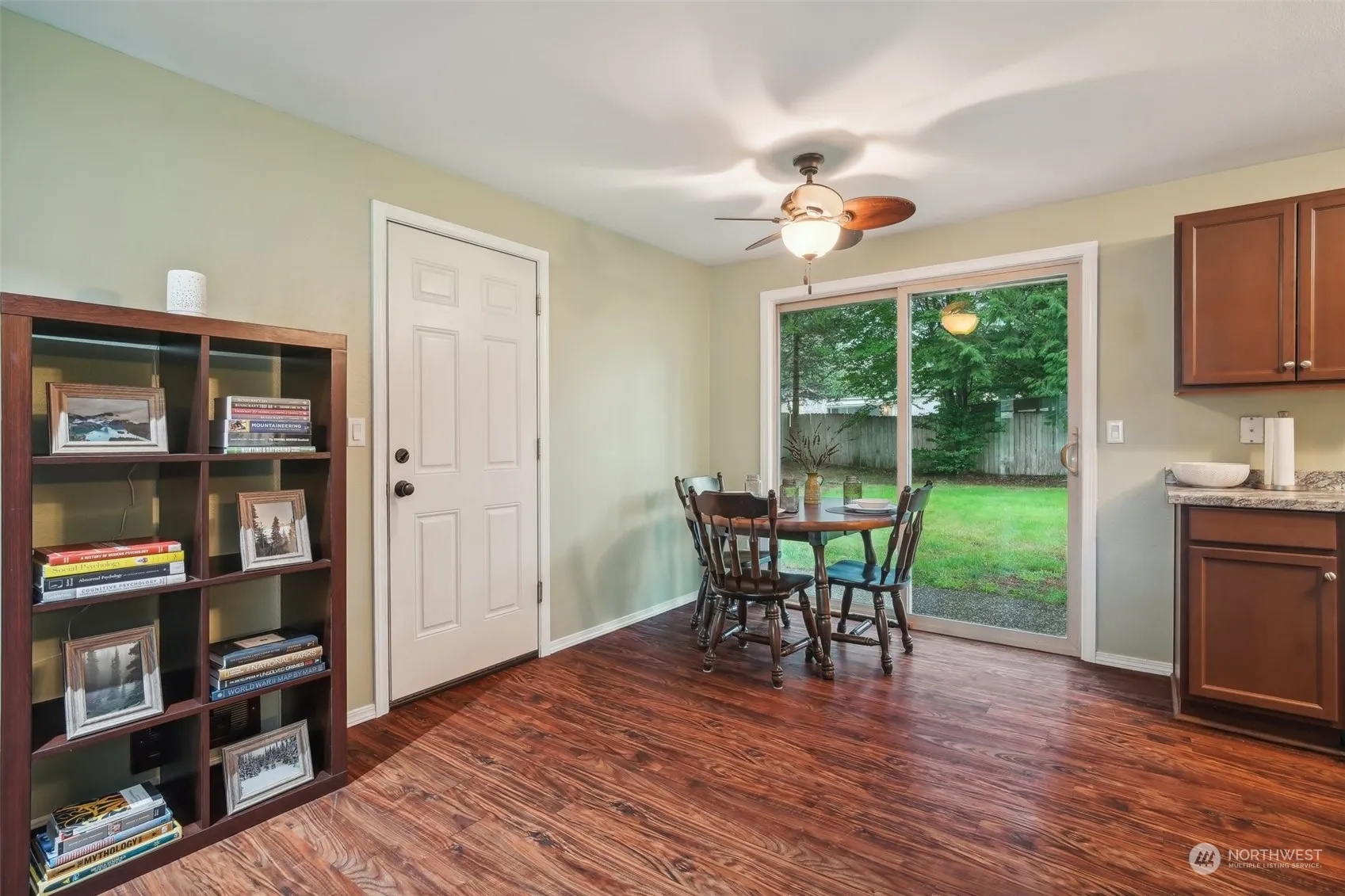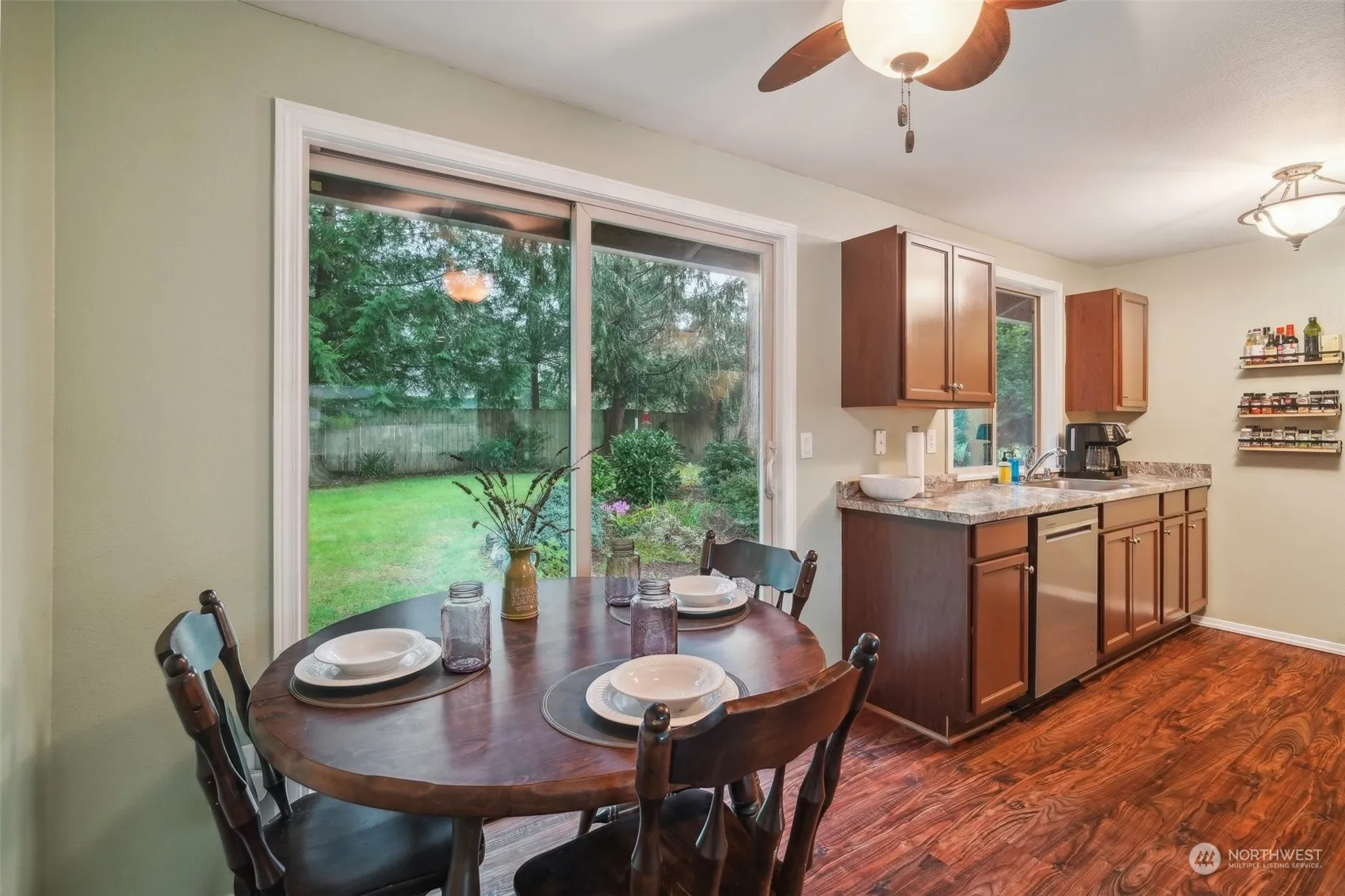 Move in ready rambler on large quarter acre level lot! Entry opens to living room with bay window and cozy free standing pellet stove. Fully refreshed kitchen with matching stainless steel appliances and room to dine. Primary suite with full en suite bath. 2 additional generous size bedrooms with full guest bath. Slider opens to huge fully fenced backyard with lots of room to play, garden and entertain. Spacious 504sq.ft. 2 car garage has lots of room for storage, parking, or tinkering. Ample driveway parking and room for the RV or boat. Views of the mountains surround you! Walking distance to school. Minutes to groceries and lots of recreational activities.