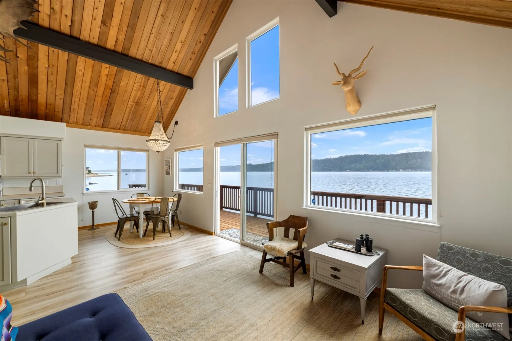 Secluded beach home on Hood Canal, a rare chance to own this premium waterfront (& you thought there wasn’t anything like this available) 250′ no bank wtft faces South w/150′ bulkhead & entertainment deck on top. Nearest neighbor homes are 250’+ beyond property to the E & 200′ to the W. At high tide the oversized deck feels like an extension of the sea itself. Enjoy sunrise to sunsets inside with this open floor plan, soaring ceilings, greatroom-kitchen-dining area. Curved staircase to Primary suite upstairs. Includes hot tub, beach cabana & custom bunkhouse sleeps 4. Side deck is perfect for a crowd. A delightful getaway built for fun, relaxation, enjoyment. Owns 1.4 ac Waterfront & 1.55ac. Has a proven success for AirBnB, premium rates.