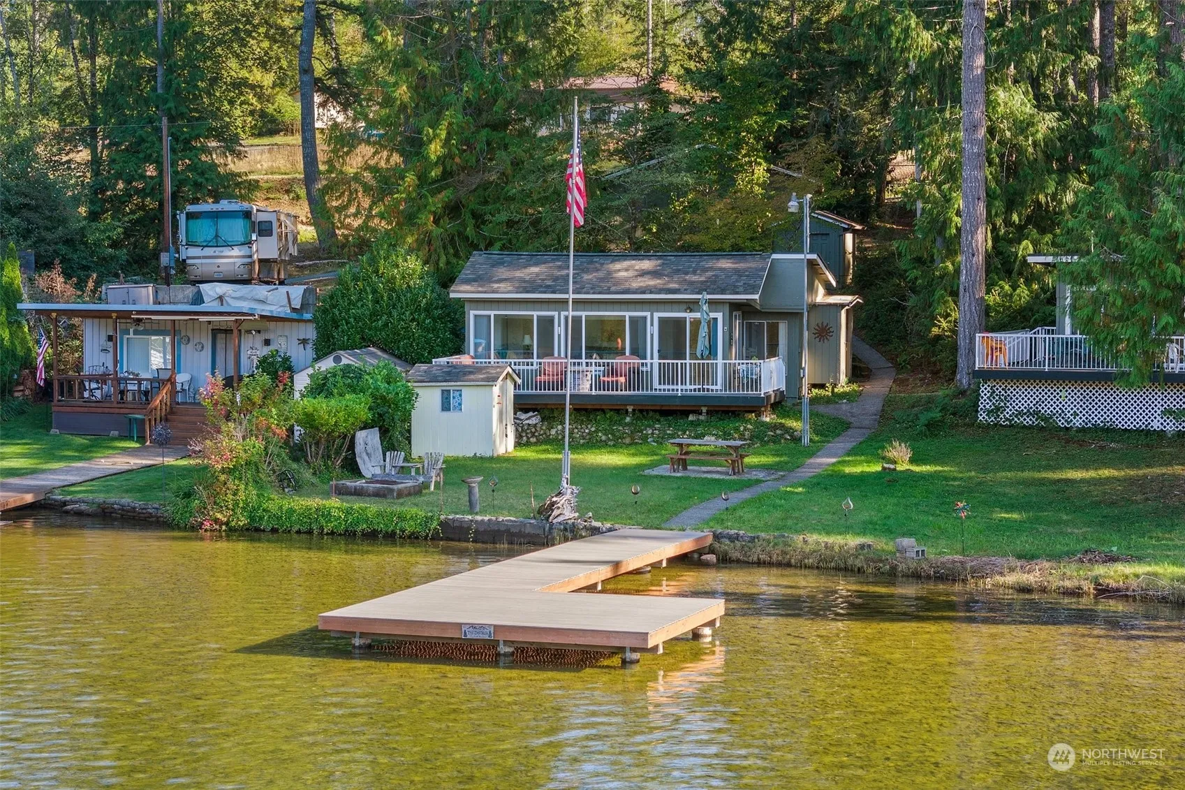 “We thought we were just having fun, but we were really making a lifetime of memories!” is the mantra of the owners of this prime Haven Lake retreat! This rare opportunity features 3 no-bank lots with 123′ of waterfront, a charming 1 bedroom, 3/4 bath main house, & a cozy 2-bedroom bunkhouse (no bath)—perfect for overniters! With 2 docks, a 2-car garage that’s housed a pristine Maxim boat, expansive decks, a relaxing hot tub, a gas fire pit, & room for an RV, it’s the ultimate lakeside getaway. Whether you’re into boating, jet skiing, kayaking, fishing, swimming, or simply soaking up the serene surroundings, this vibrant community has it all. No HOA! Available for the first time in 30 years—don’t miss out! 15 minutes to Belfair/shopping.