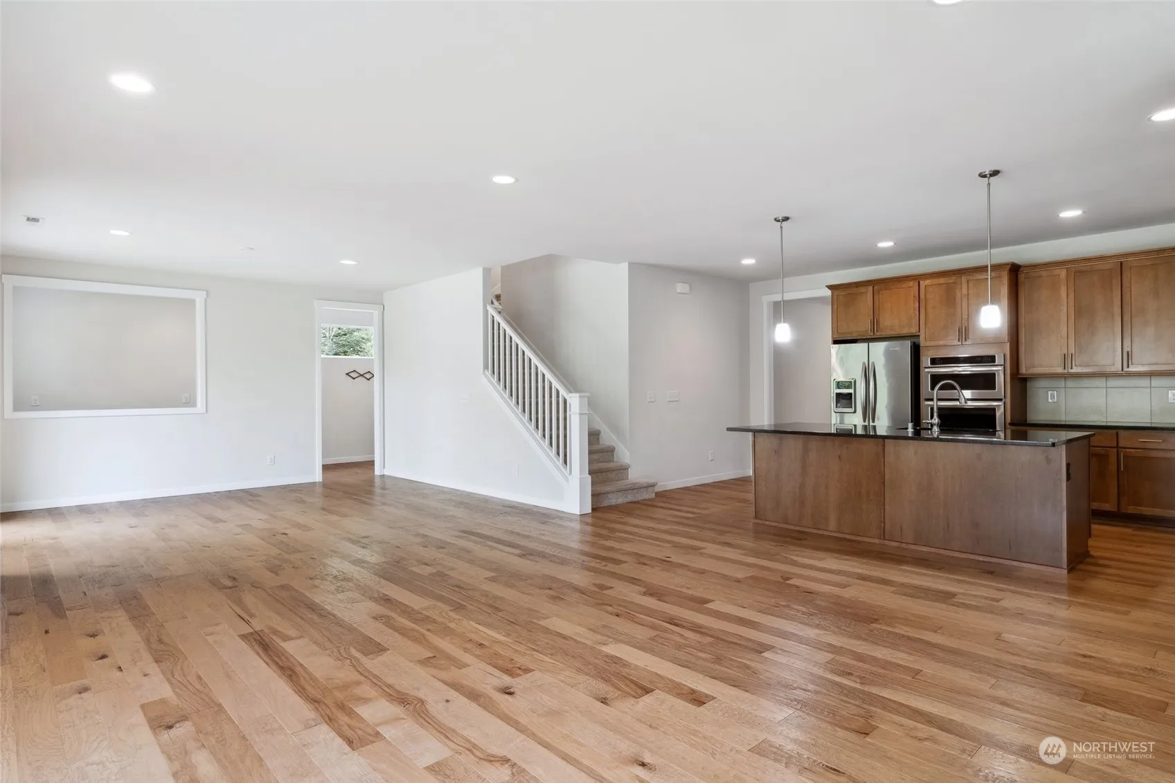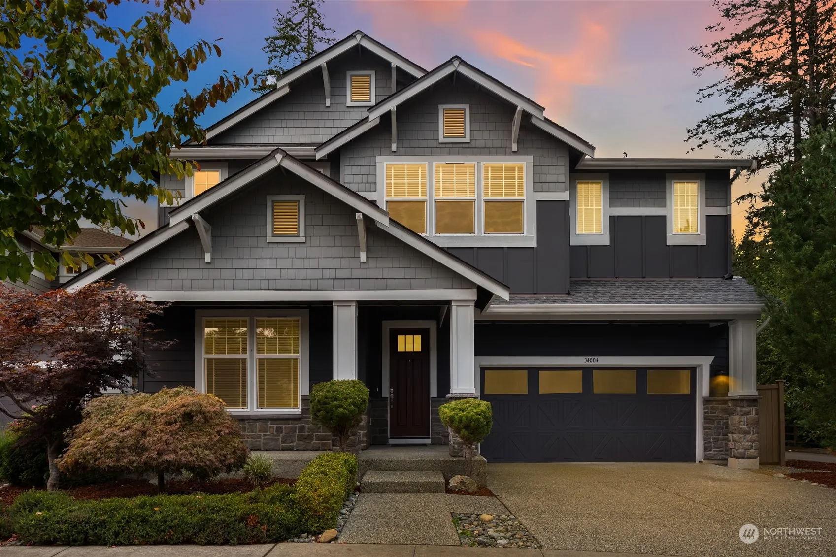 This 1st owner 5-bedroom home in a highly sought-after neighborhood of 34 homes, nestled on a peaceful, flat cul-de-sac in Snoqualmie Ridge. EZ commute to Bellevue, Redmond, or Seattle. Chef’s dream kitchen w/ a spacious island, sleek quartz countertops, KitchenAid refrigerator, built-in double ovens, a powerful hood & gas stove. The open-concept main floor is flooded w/ natural light thru large windows. A spacious dining area, a cozy family room & an open office. The main floor also features a private suite, ideal for guests or multi-generational living. Upstairs, the luxurious master suite awaits, accompanied by 3 additional bedrooms that share a well-appointed bathroom. Enjoy EZ access to scenic trails right next to your new home!