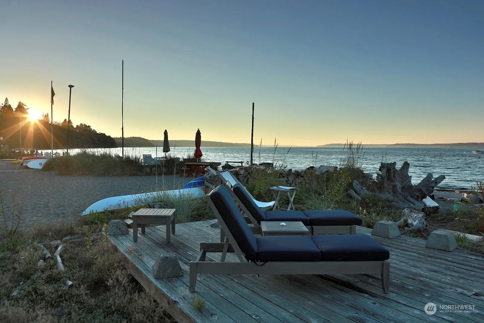 Early 1900’s “private” historic community of Sandy Point with its unique boardwalks, thousands of feet of sandy beachfront, community dock with boat storage, playfield, full time caretaker & more sits this beautifully restored & updated waterfront cottage. Nantucket meets Cape Cod charm with lightly tinted wood walls, ceilings & floors, Carrara marble & traditional subway tile accents, 2 full primary suites & 2 bedrooms with custom built bunks there is plenty of room for the gang. From sunrises to the colors of summer sunsets, enjoy the magnificent views, migrating gray whales, resident orcas & just a hop skip & a jump to Langley’s seaside village. Don’t miss this once in a lifetime opportunity! Fully furnished too!