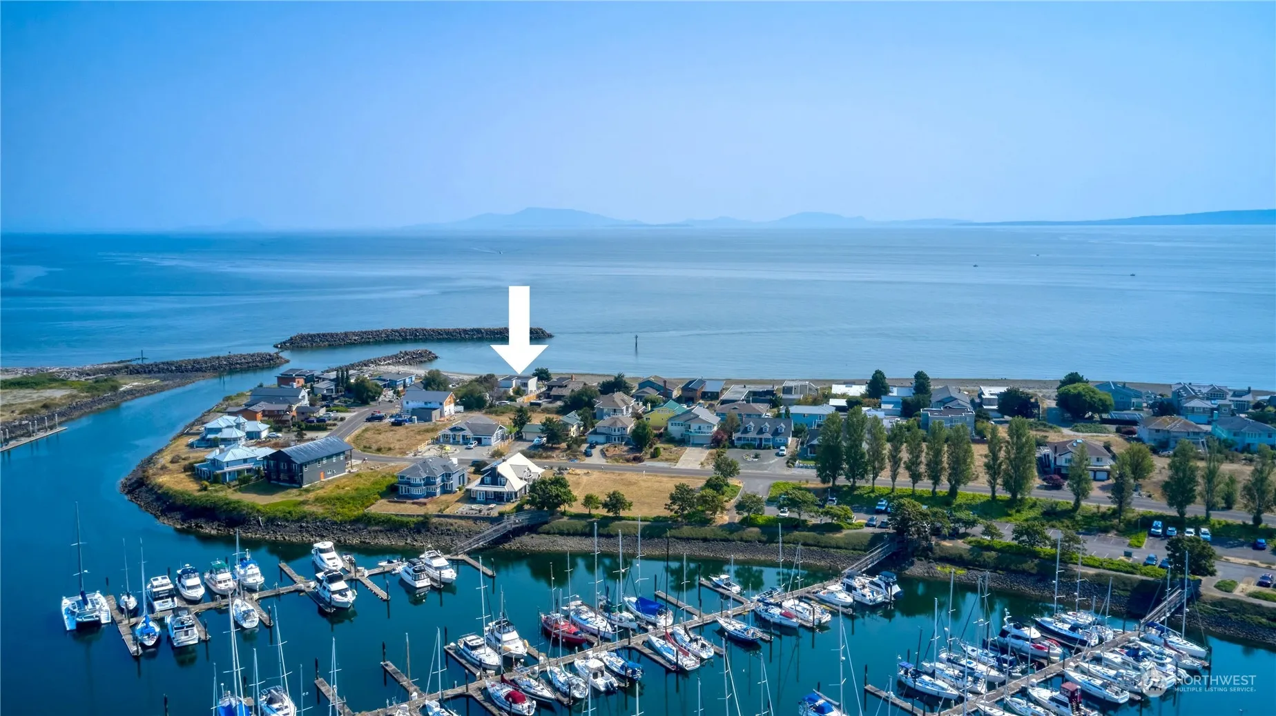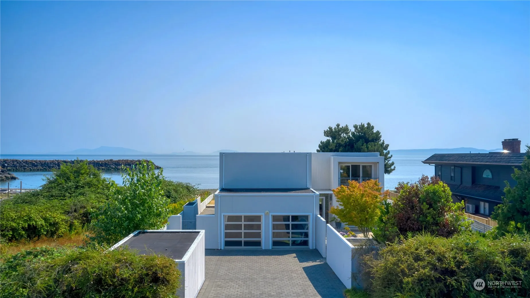Rare offering on the south side – stunning luxury contemporary home situated on a 60’ waterfront lot with no bank. Showcasing panoramic vistas of Mt. Baker, the San Juan Islands, and the Marina Breakwater. All year-round living, open, and light-filled living spaces that extend to the outdoors with expansive decks on both exposures. Architect-designed home featuring 3 beds, a main level den/office, and 3 baths. Private courtyard, a double car garage, and marina access right around the corner. Experience waterfront living in beautiful Point Roberts, less than 30 minutes from Vancouver, BC.