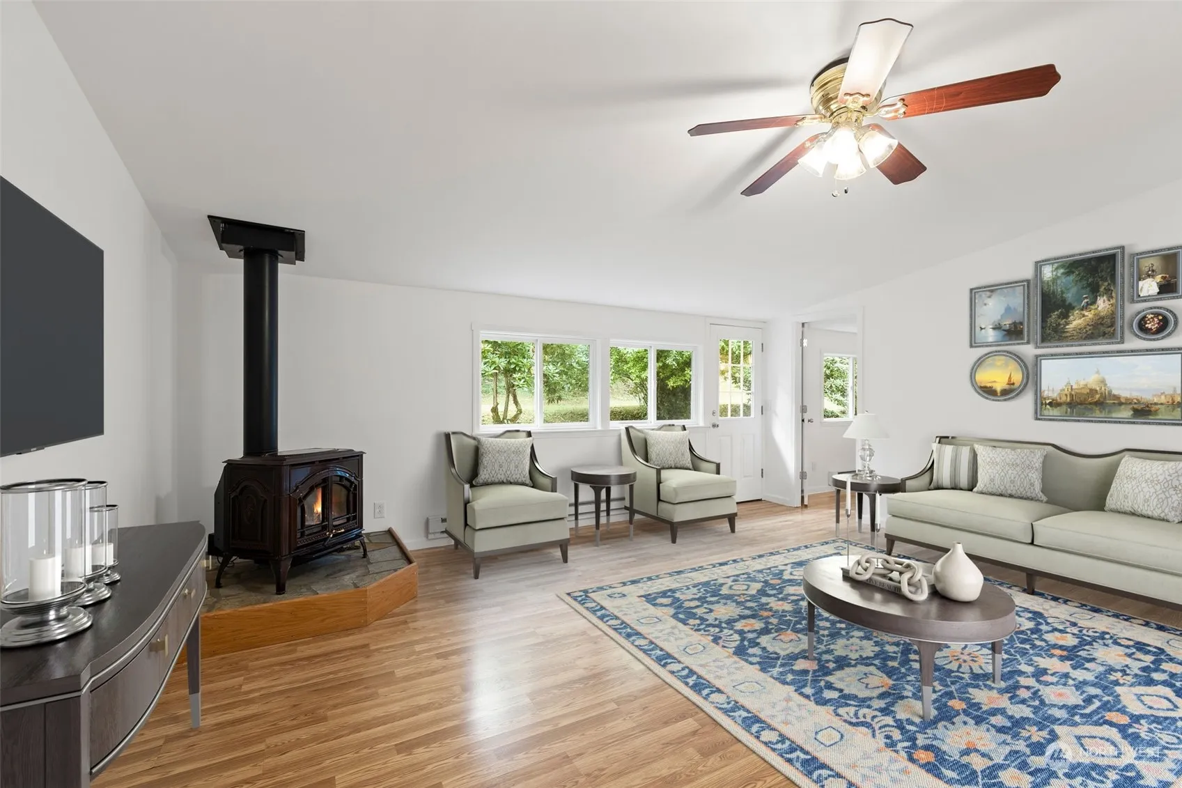 • Interior Features Bath Off Primary, Double Pane/Storm Window, Fireplace, Walk-In Closet(s), Dining Room, Water Heater, Ceiling Fan(s), Laminate
