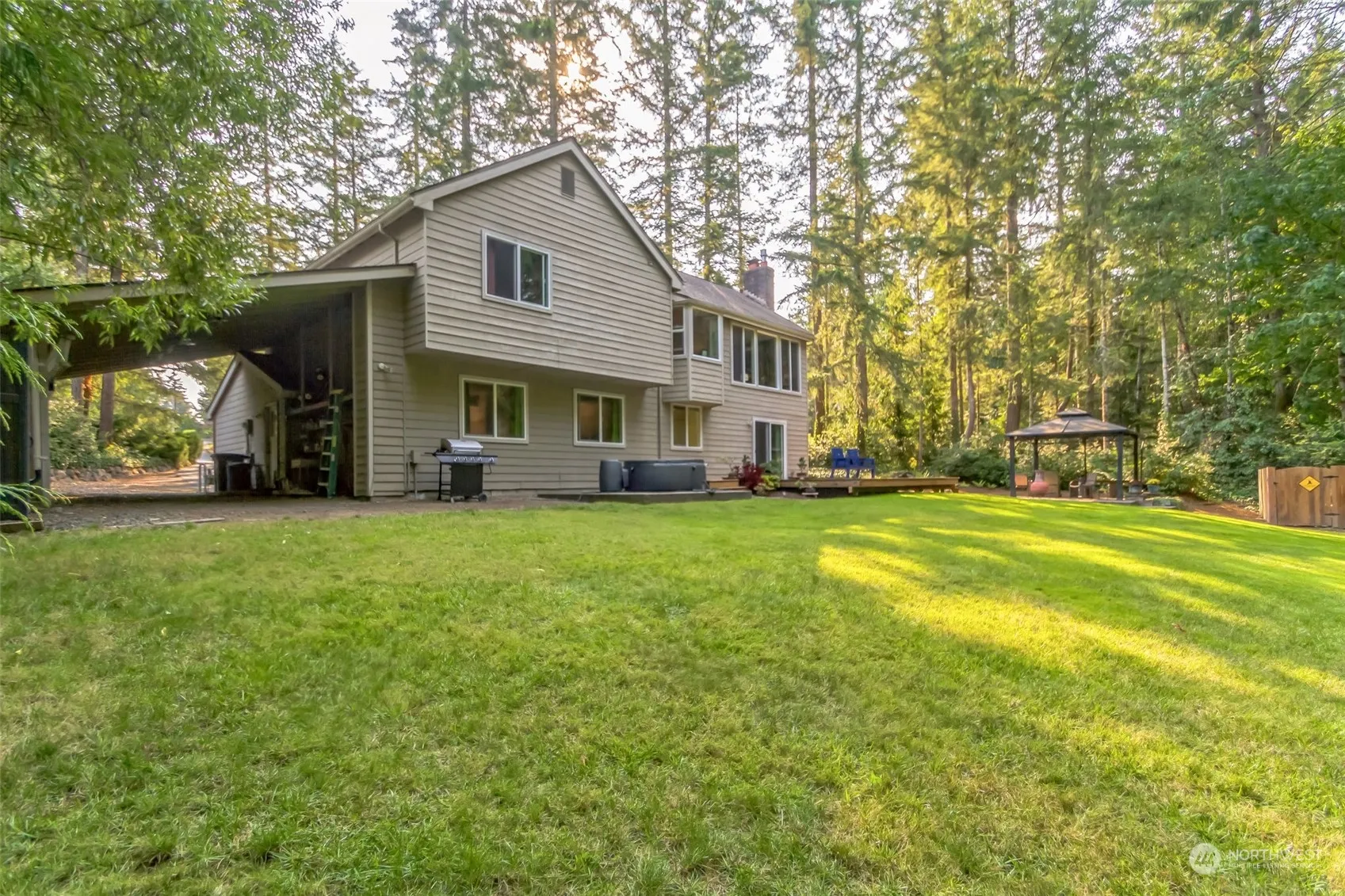 Discover the joy of living in a serene parklike setting just 8 min from the amenities of Silverdale! This spacious home boasts a backyard oasis beckoning you to unwind. Surrounded by established trees + 20ft greenbelt, your privacy is ensured. A roomy kitchen and vaulted ceiling in the DR/LR area add to the appeal of this impeccable home. Enjoy the dual-head shower to wake up or wind down. W/ 2 ample BRs and 180-sf primary, each can have their own spot to relax. In CKSD w/ quick access to HWY 3, this wooded paradise provides convenience w/o compromising on comfort or seclusion.