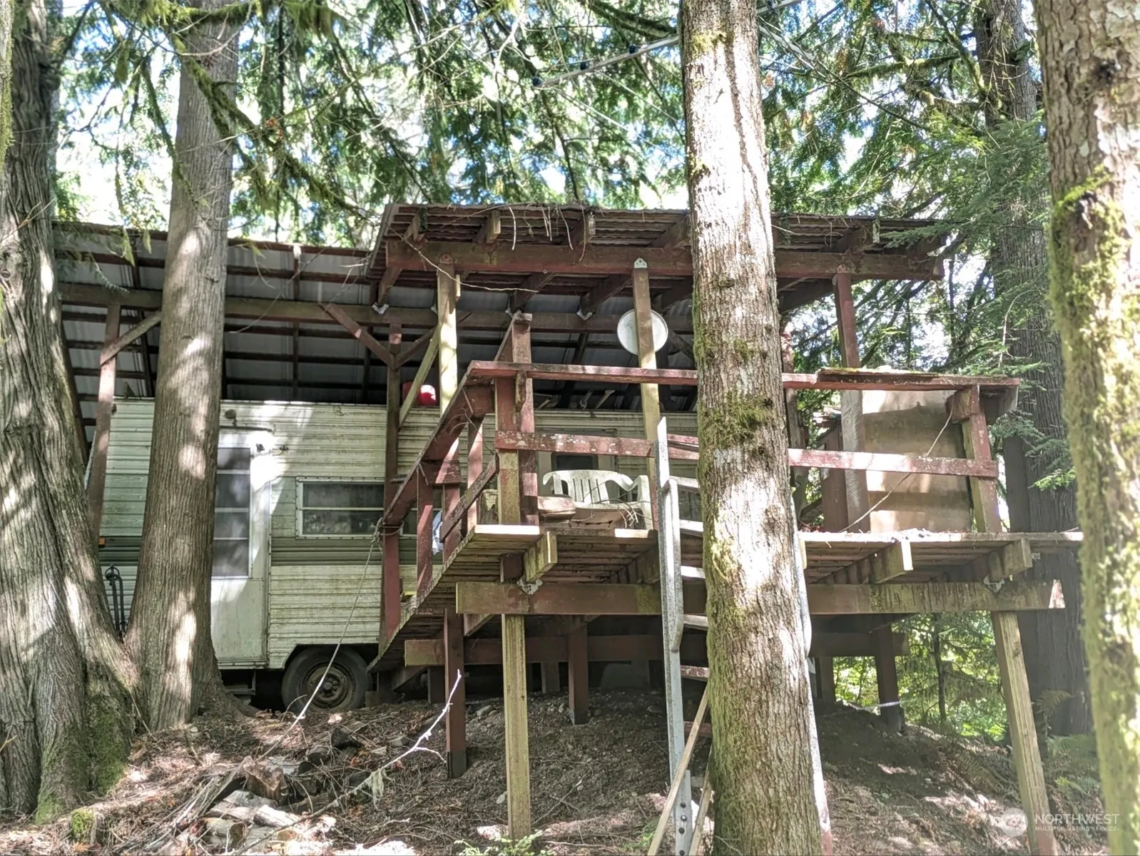 Nestled in the foothills of the North Cascades, this Lake Tyee property has an RV with a cozy wood burning stove, metal covered roof and deck. Nice corner lot with beautiful mature trees with great possibilities. If you are looking for a beautiful and peaceful place to vacation, then don’t look any further. This is a fun little project to make your very own. Come on over and take a peek at this private lot. Sit on the deck or adventure out to one of the many trails. You might want to just hang out pool side or catch fish in the lake. Lake Tyee offers many amenities. But check it out for yourself. 210 days usage, $178/mo covers water, septic, garbage. Power is based on your usage.