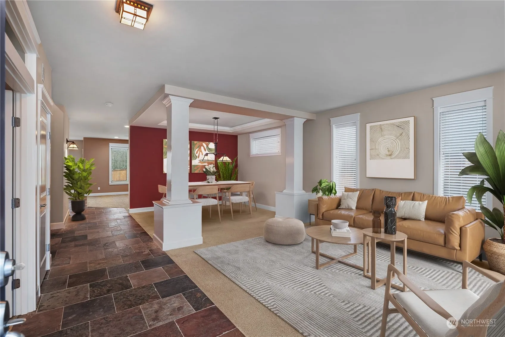 Nestled on a quarter-acre lot, this home offers a thoughtfully designed layout that combines comfort & functionality. The first floor showcases elegant slate flooring, a family room that seamlessly connects to the dining area, a great room, & a kitchen with a cozy eating nook perfect for daily meals. A dedicated den/office provides an ideal workspace. Upstairs, the spacious primary suite boasts a separate seating area, 2 walk-in closets, & a en-suite bathroom. Two additional bedrooms & a versatile bonus room complete the upper level. The expansive backyard features a garden area, ample seating, & a relaxing hot tub. Additional highlights include a spacious three-car garage & side RV/boat parking, ensuring plenty of storage & convenience.