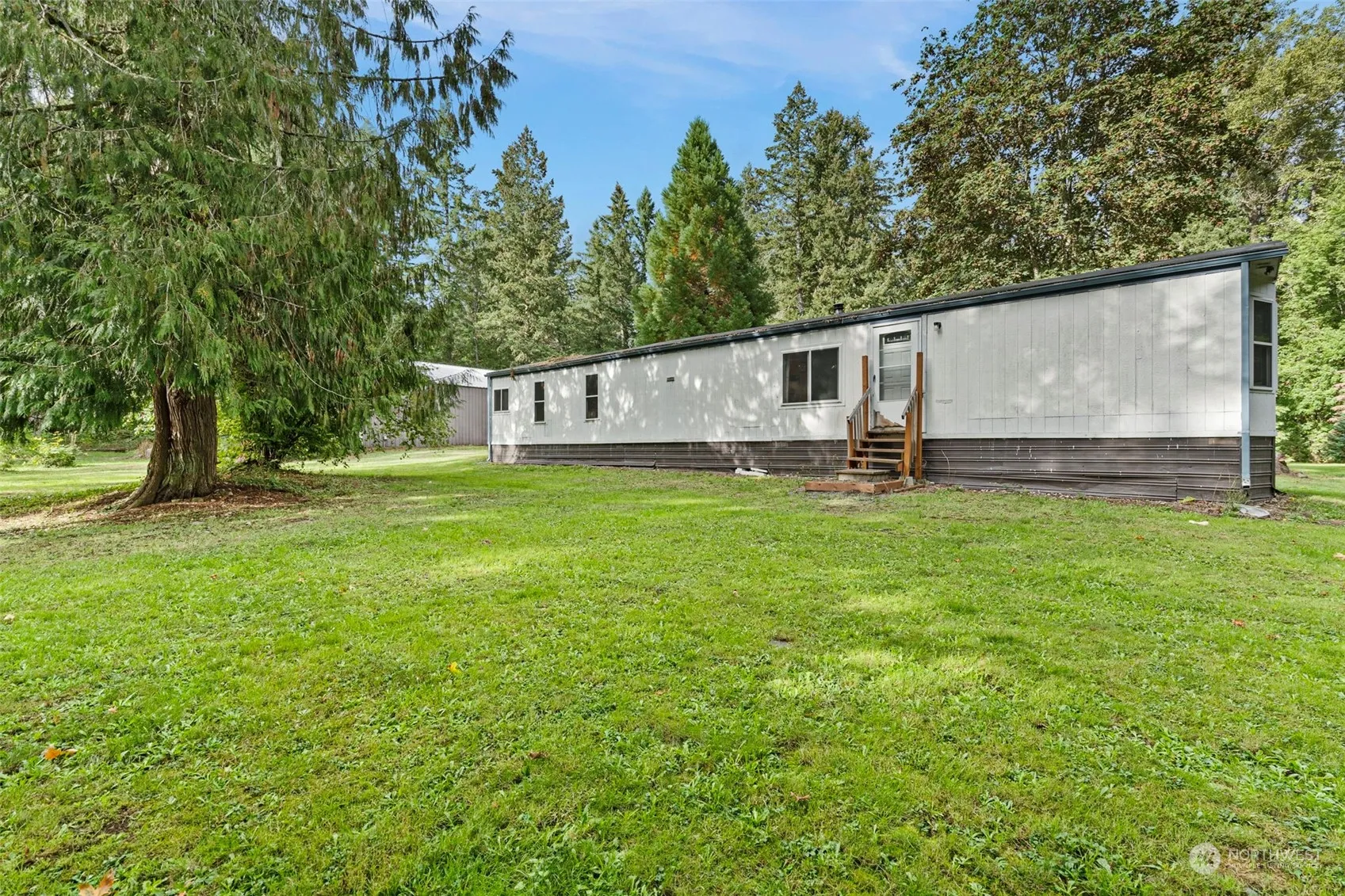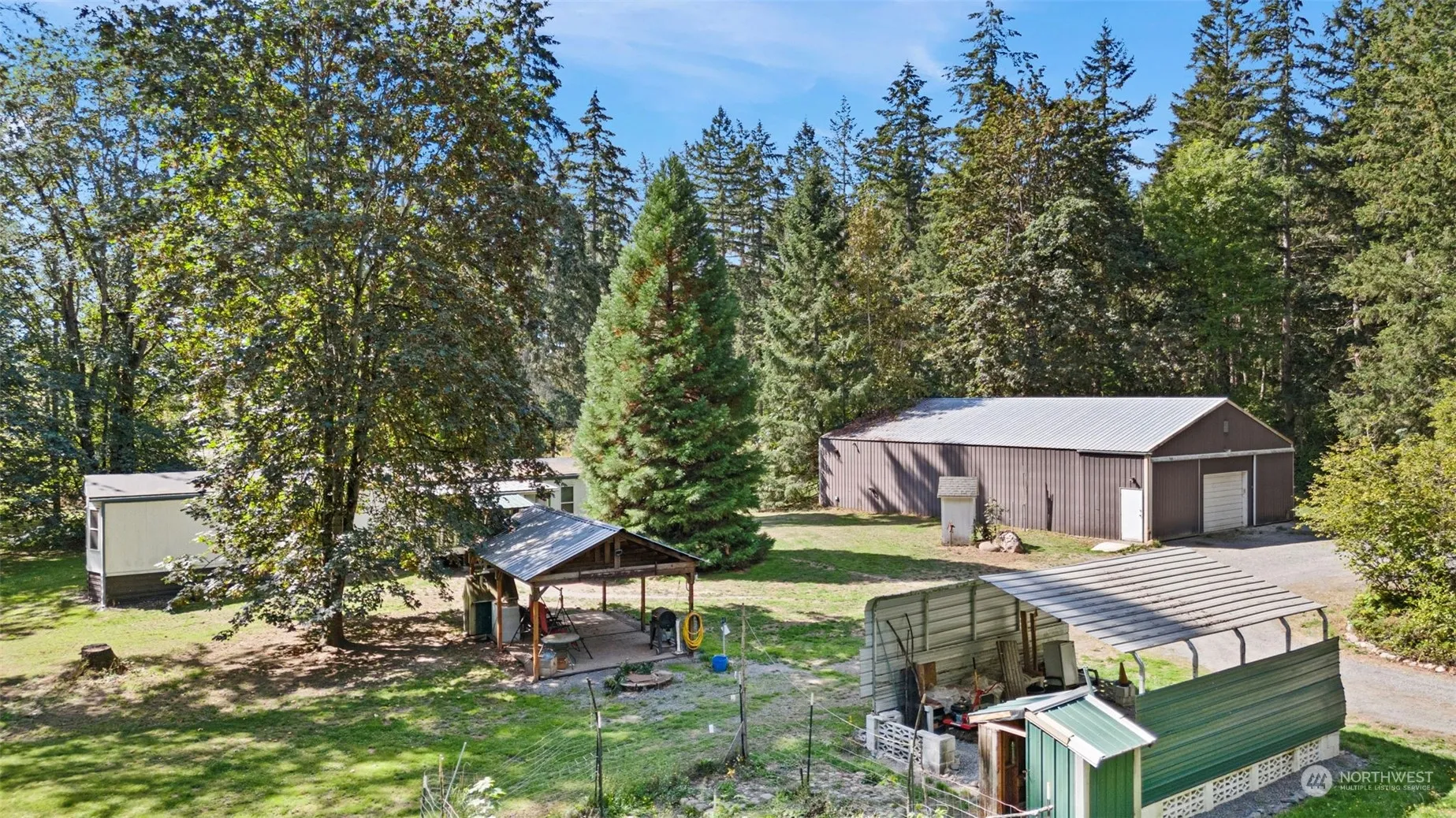 New Reduced Price!! Plus $2k Buyer Flooring Allowance! Come See this 5 Acre Corner Lot Boasting a Huge 40’x60′ Shop W/Concrete Floor, 40’x20′ rec room – in shop w/potential ADU, & Security Lights. Plus, a 100′ Steel Arched Carport/Boat/RV Parking & Additional Metal Parking/Storage Building. Enjoy quiet evenings or host parities under Covered Patio Plumbed W/Electric & Water and Firepit. All the work has been done on the custom chicken coop, garden w/paved paths. Private Well. 2 Bed 1.5 Ba 930 Sq Ft Mobile W/Pellet Stove, live in while you build your dream home. 3 Entry points for easy ingress & egress. Come out & see this lush property w/complete privacy and only a mile to Harts’ Lake Fishing & Boating!